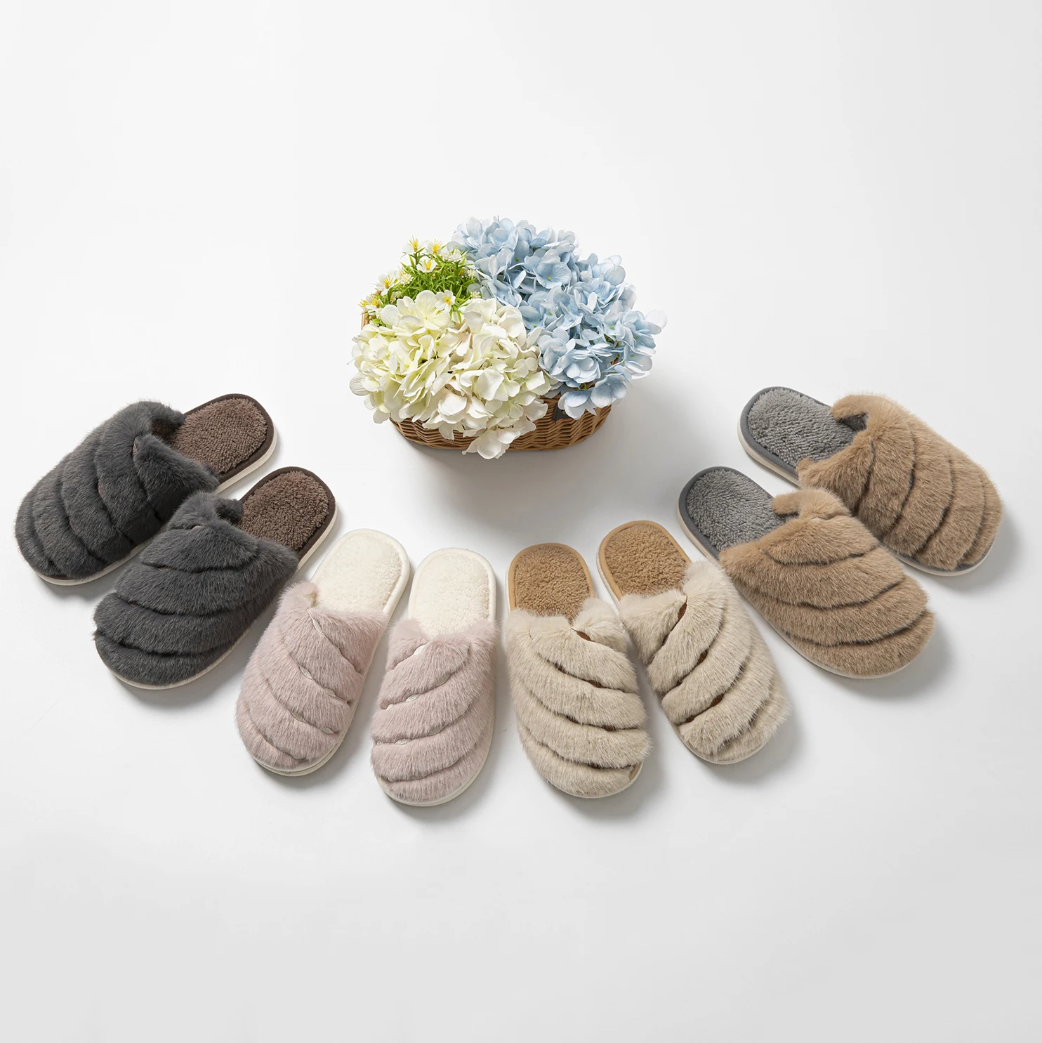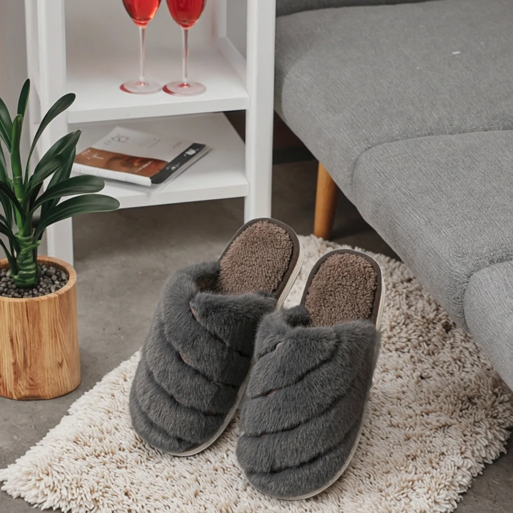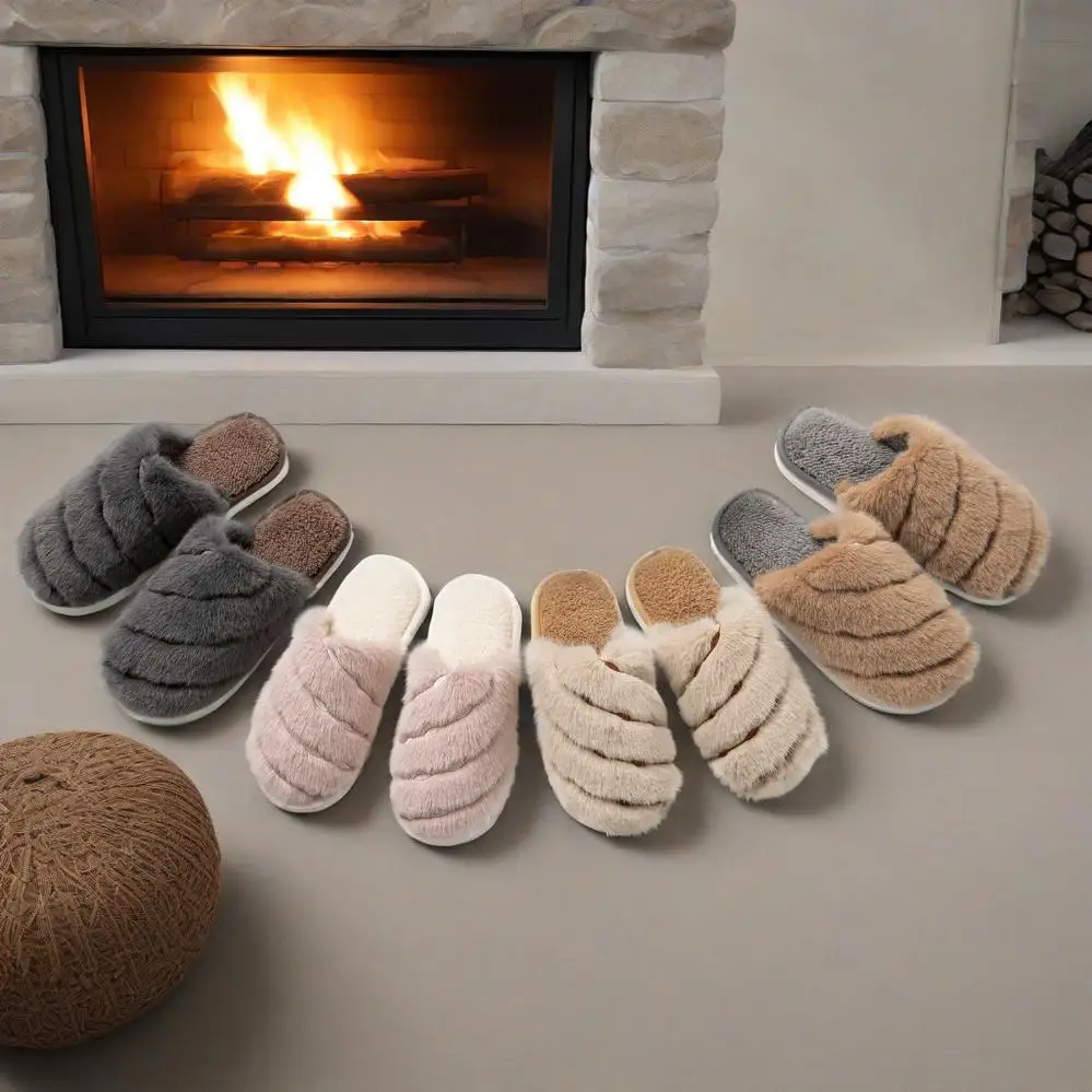 Hot Selling Indoor Home Winter Fluffy for Slippers with Comfortable Soft PVC Outsole and Soft Sole for Couples Closed Toe Style