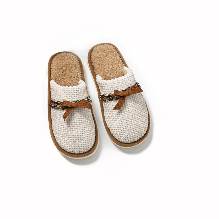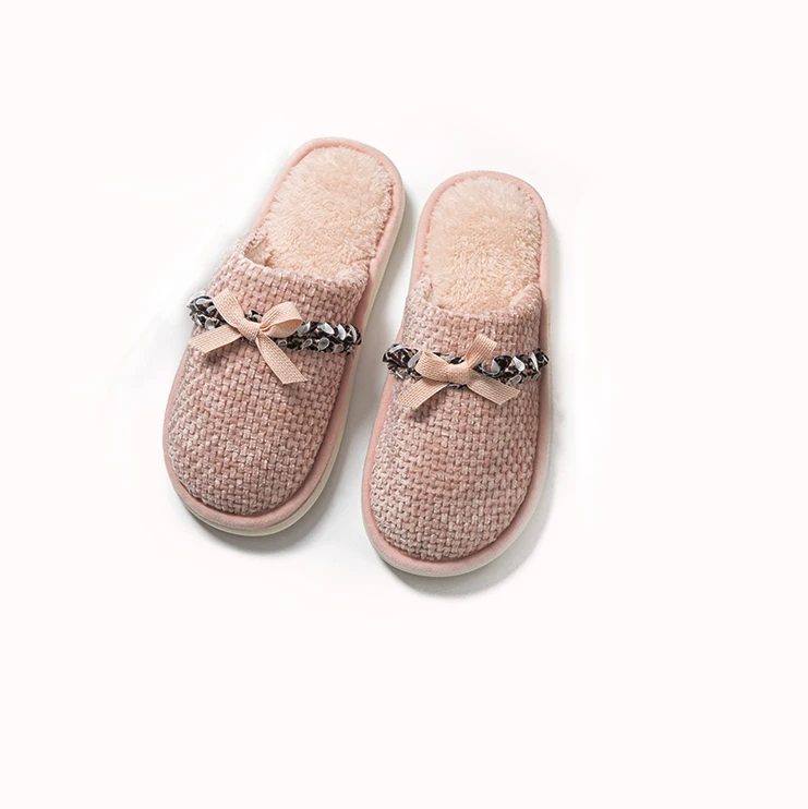 Couple's Comfortable Indoor Winter for Slippers with Stylish Bowknot Design Soft PVC Outsole Anti-Slip Fur for a Cozy Winter