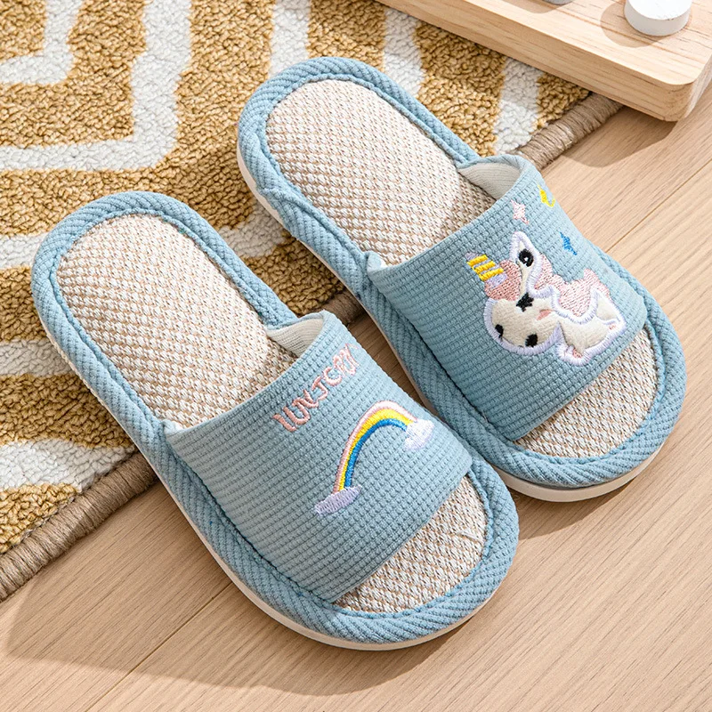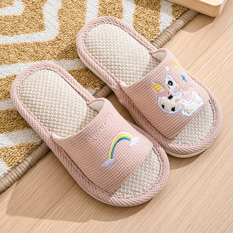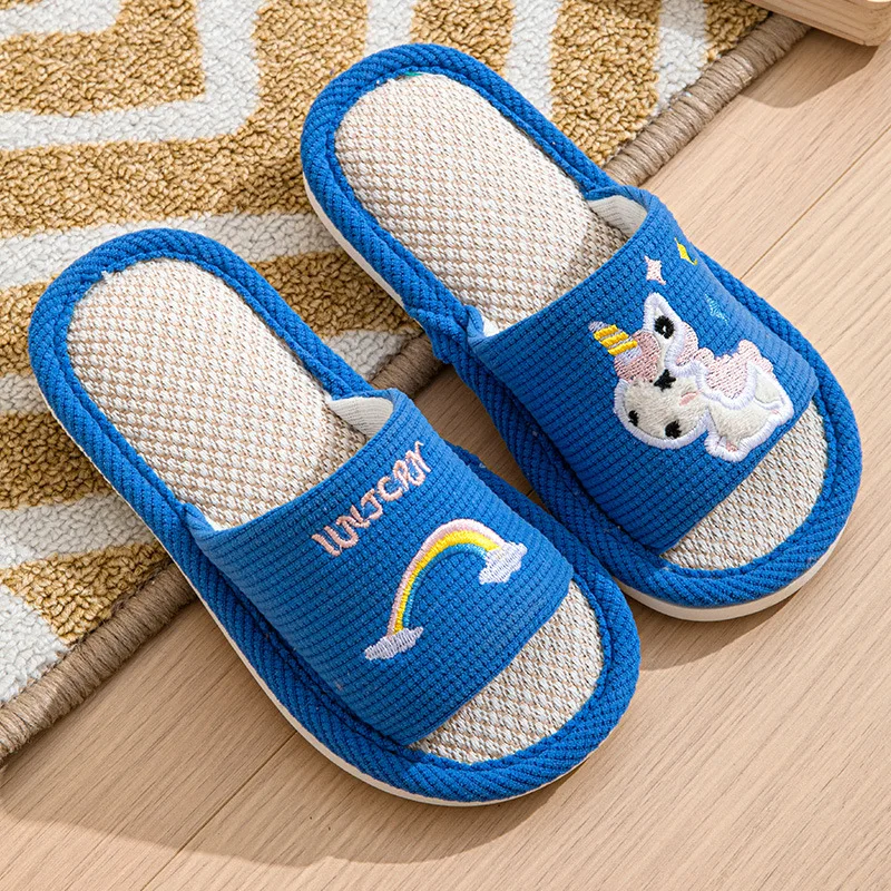 Children's Printed Open-Toe Linen for Slippers Cute Cartoon Anti-Slip Comfortable for Boys Girls for Spring Autumn Seasons