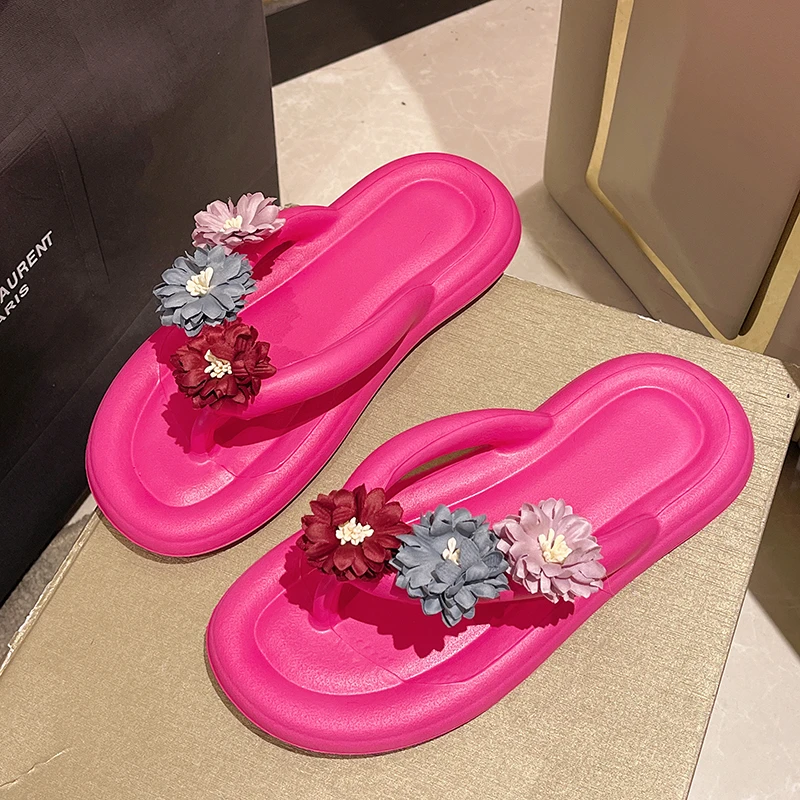 Fashion New Lovely Flower Summer Beach Casual Light Weight Quick Dry Outdoor Ladies Flip Flops Women Flip Flops EVA Footwear