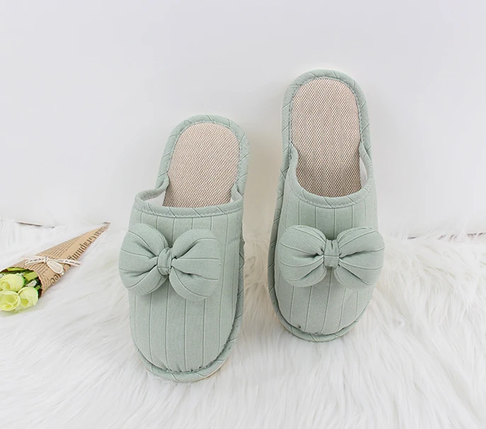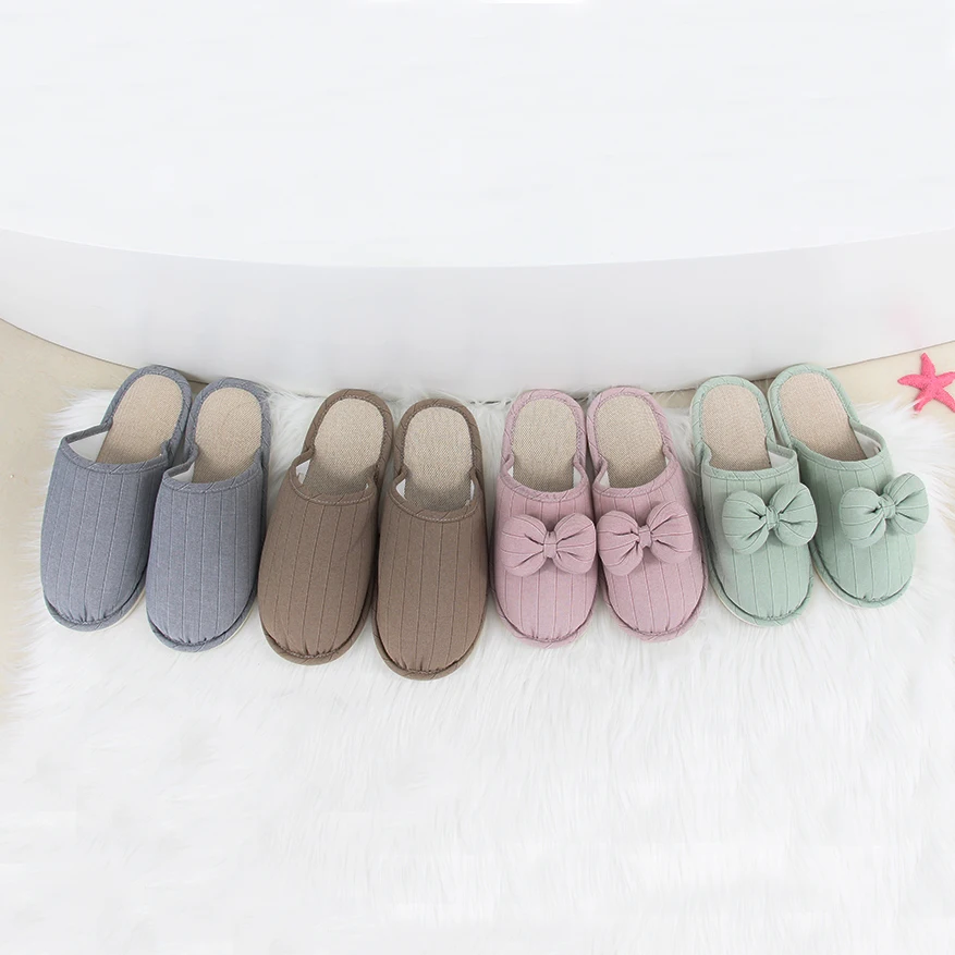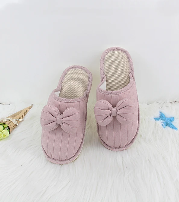 Customization Couple's Indoor Warm Slippers with Bowknot Style Soft Anti-Slip for Spring Autumn Winter Available Closed Toe