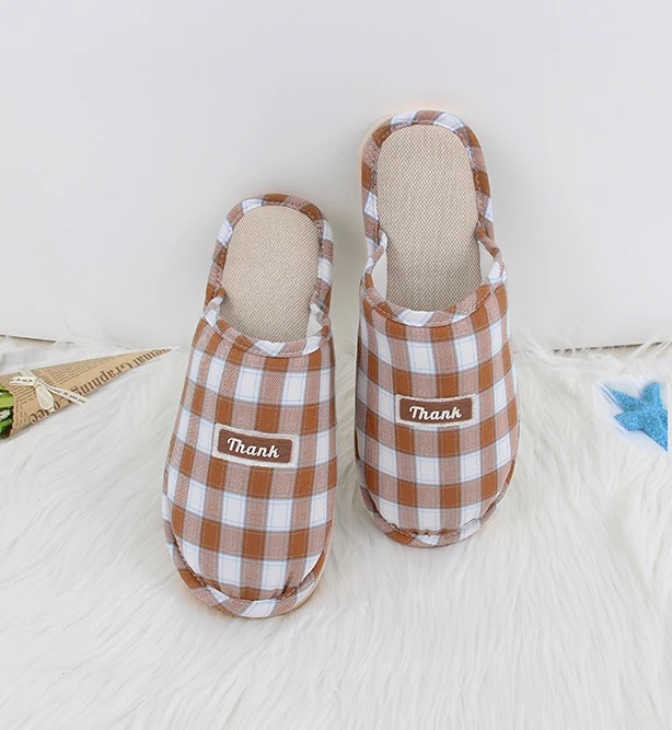 Customizable Logo Indoor Winter Warm Slippers for Couples Plaid Style Upper and PVC Lining Insole Soft Anti-Slippery Features