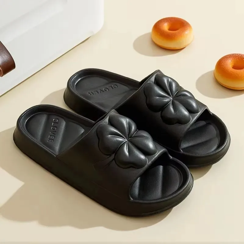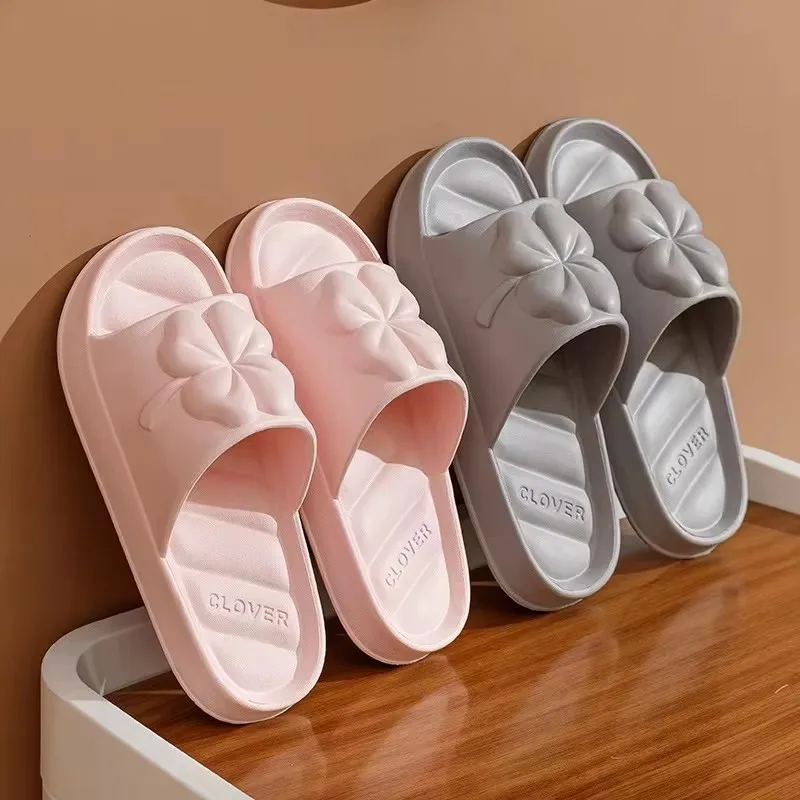 Hot Selling Ladies Summer Indoor for Slippers with Open Toe EVA Outsole New Four-leaf Clover Patterned Quiet for Home Bathroom