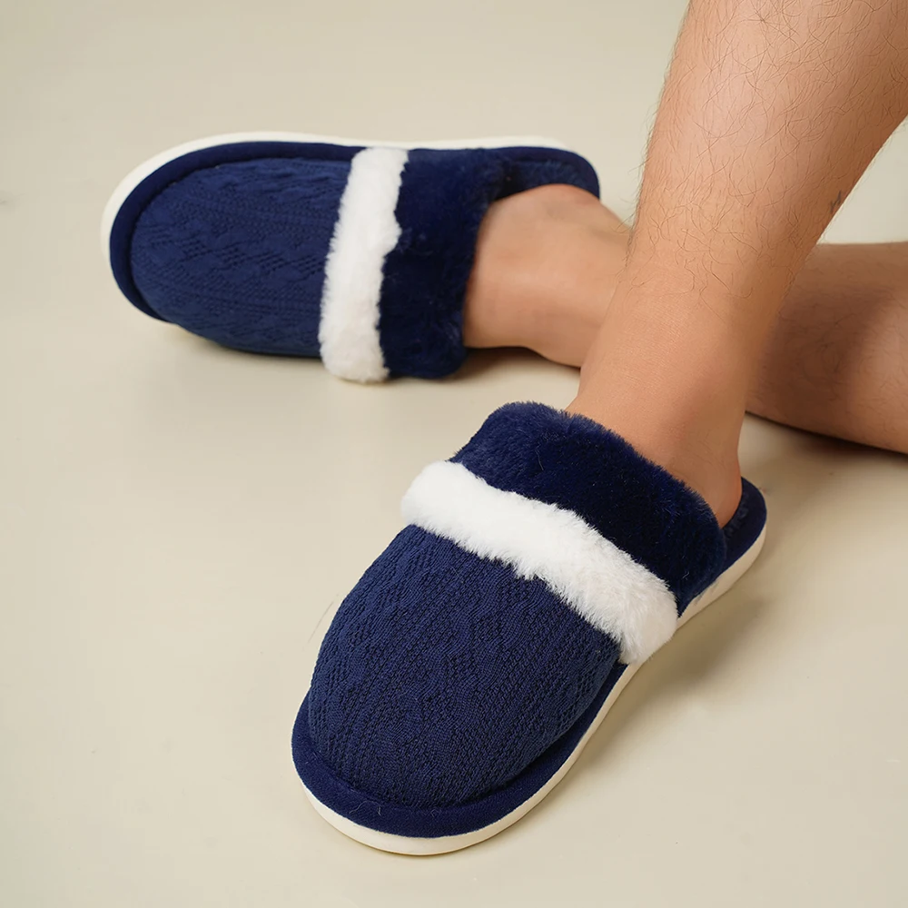 Couple's Soft Cotton Plush for Slippers Comfortable Anti-Slip Home Toe Slides for Spring Autumn Winter TPR Thermal Features Warm