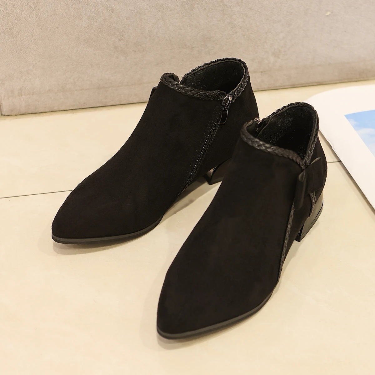 Autumn New Women's Boots European and American Pointed Head Side Zipper Women's Suede Boots Large Size Fashion Boots