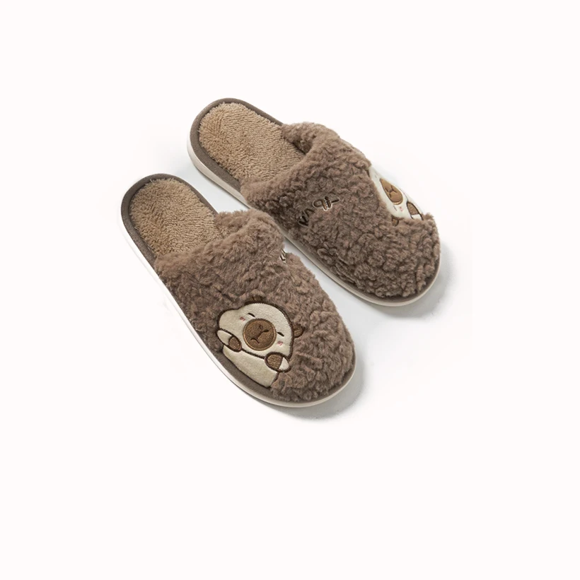 Kapibara Cute Fluffy Indoor Winter for Slippers with Stylish Design Soft PVC Outsole Anti-Slip Fur Cozy for Comfortable Winter