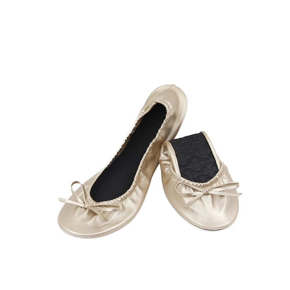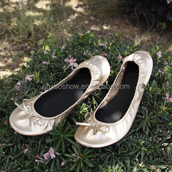 Rubber Foldable Ballet Flat Shoes Women With Elastic Band , Flat Shoes