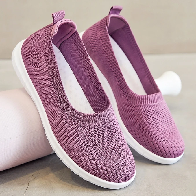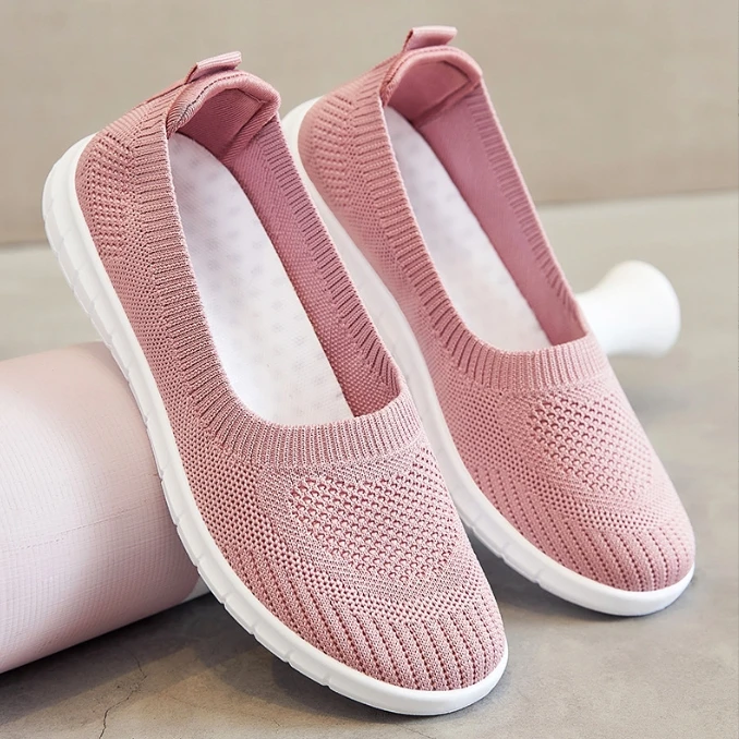 2026 Summer Casual Flat Bottomed Soft Soled Cloth Shoes New Breathable Light Weight Slip-On with Rubber Insole