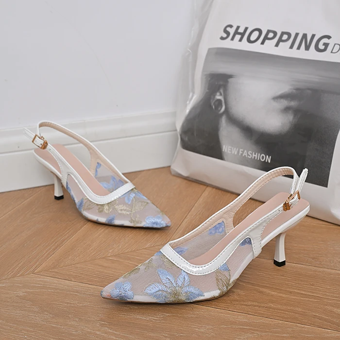 Women's Fashionable Summer Lace Plush Breathable Design Stiletto Heel Pointed Toe Trendy Styles Sold Directly Source Factory