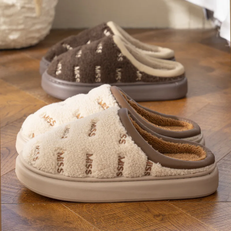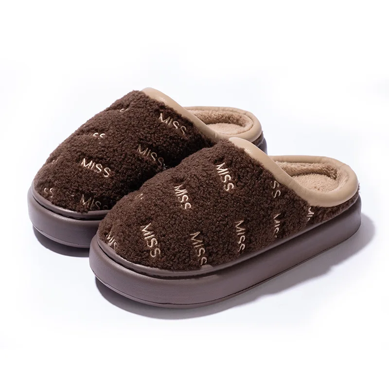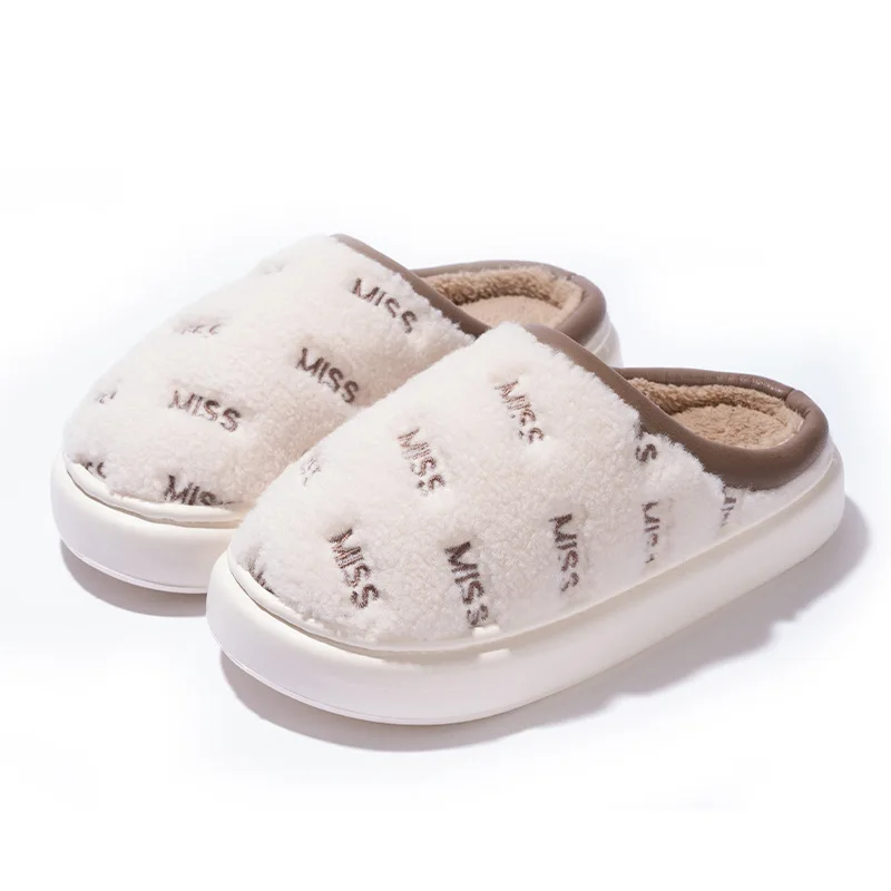 Couple's Plush Fluffy Fur Comfort Lightweight Warm Indoor-Outdoor Winter Slides for Men Women with EVA Outsole Anti-Slip