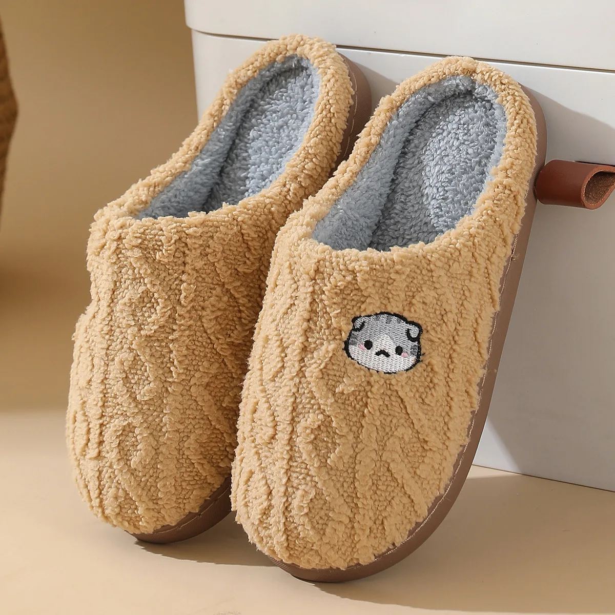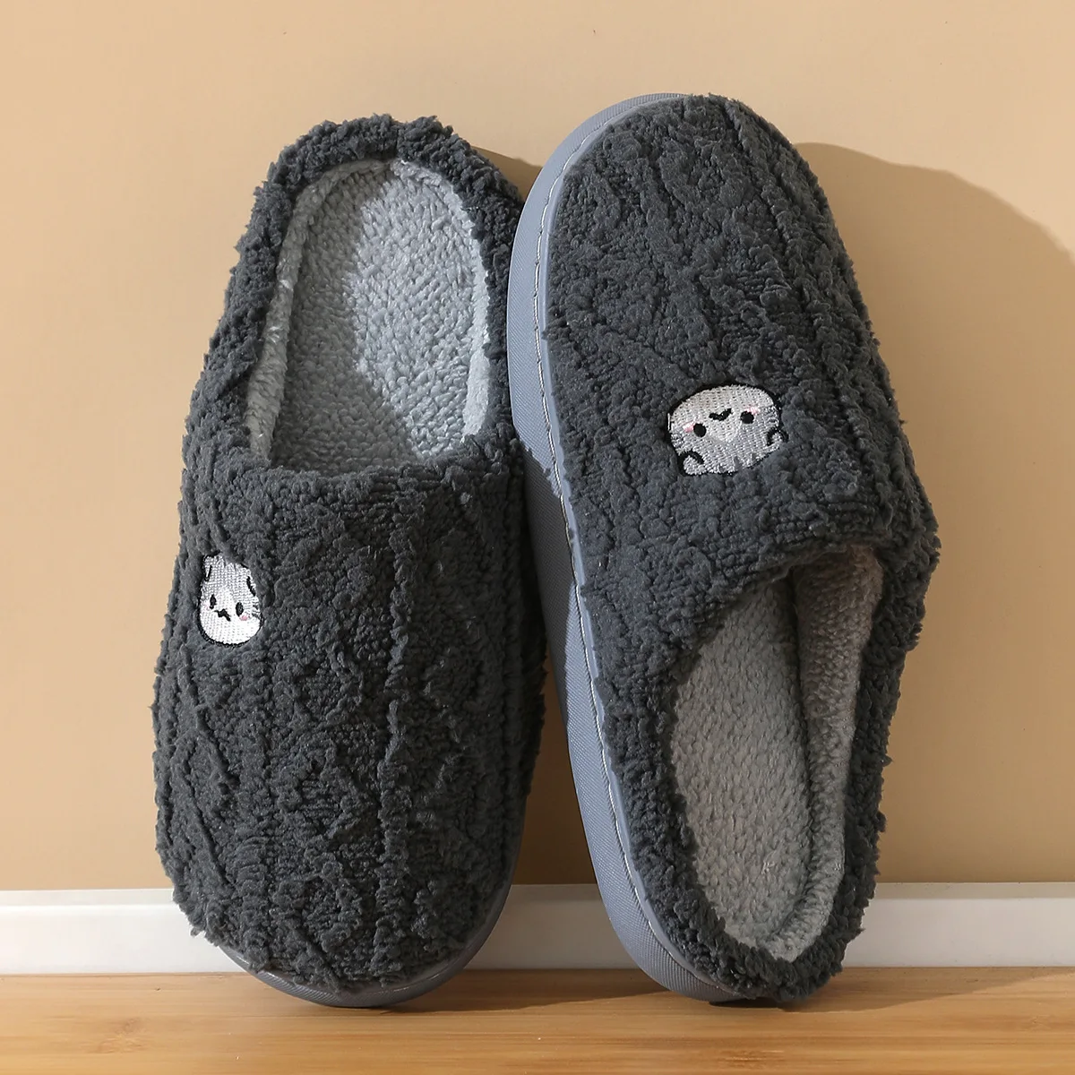 New Style Fluffy Warm Anti-Slip Indoor Winter Slides for Men Women with TPR Outsole Couple's Plush Closed Toe Lightweight Soft