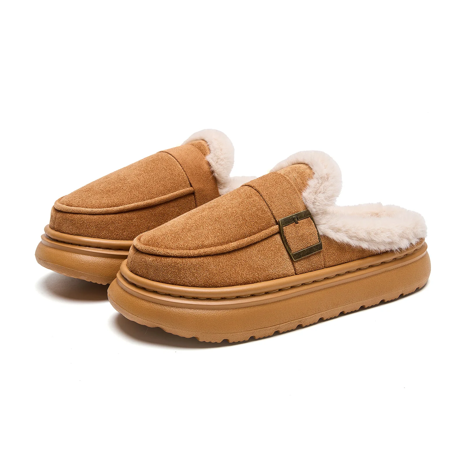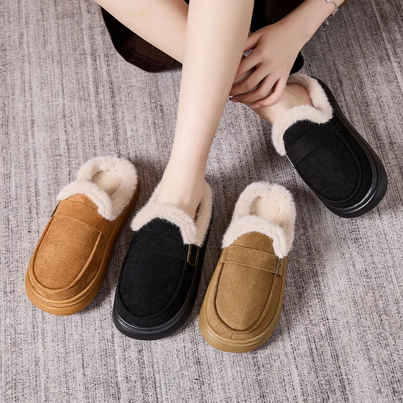 Women's Fashion Style Fluffy Warm Anti-Slip Fur Plush Comfort Indoor Outdoor Winter Slides Closed Toe Lightweight EVA
