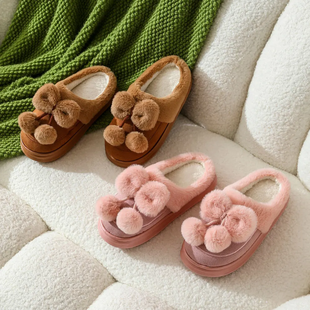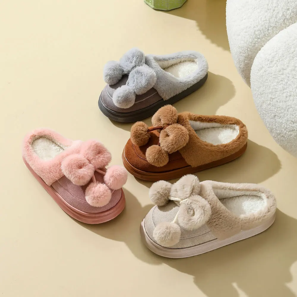 Women's Plush Bowknot Upper Fluffy Winter Warm Closed Toe Thick-soled EVA Outsole Anti-Slip Fur Slides for Comfort