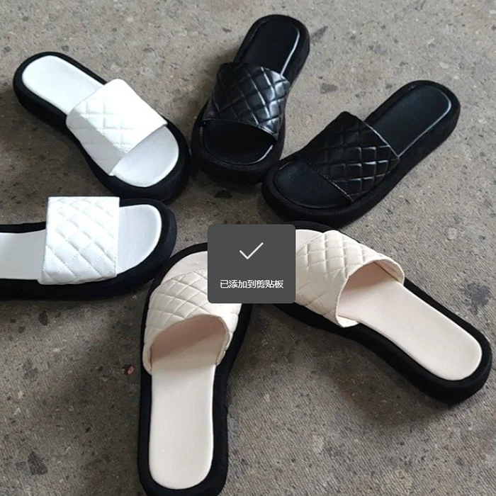 2026 Summer New PU Leather Checkered for Slippers for Women Thick Sole Platform Sandals Open Toe Rubber Insole-Wholesome Stylish