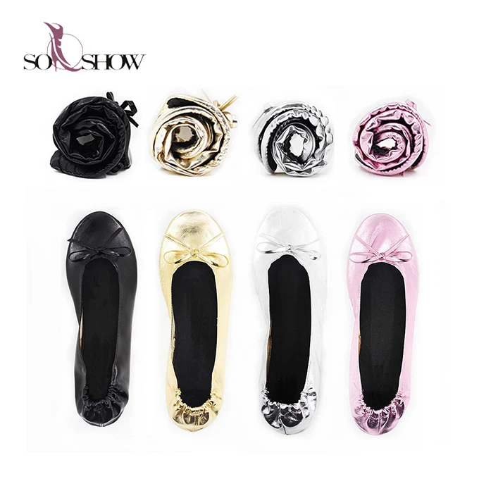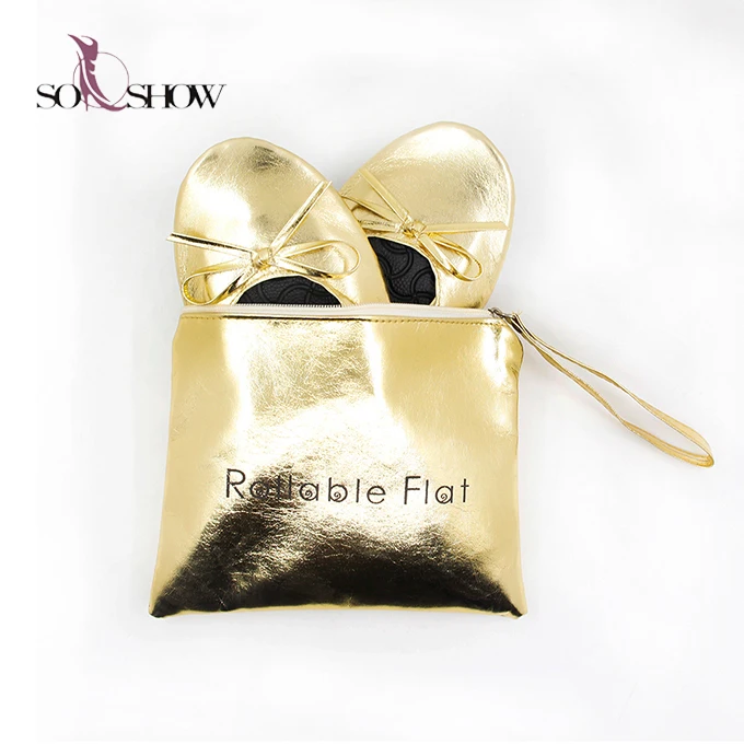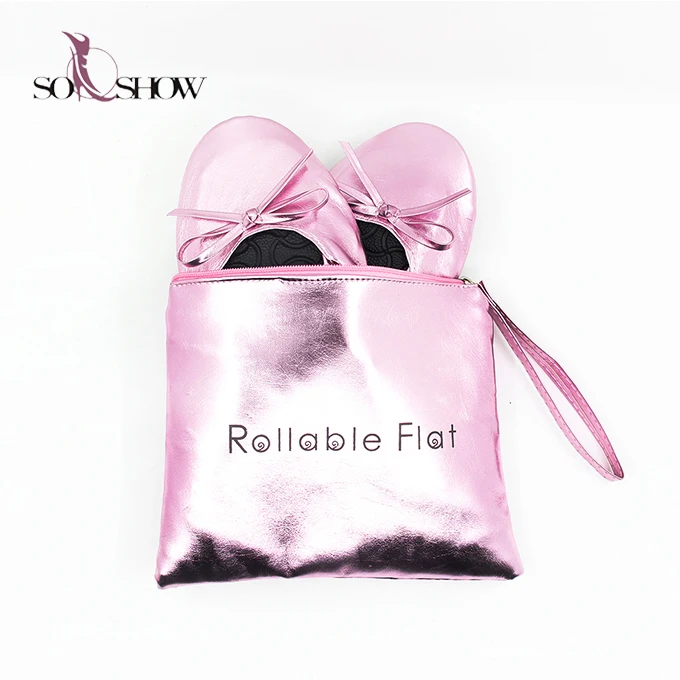 Colorful Lady Folding Party Shoes Flat Fold up Ballerina Shoes With Bag After Party Shoes