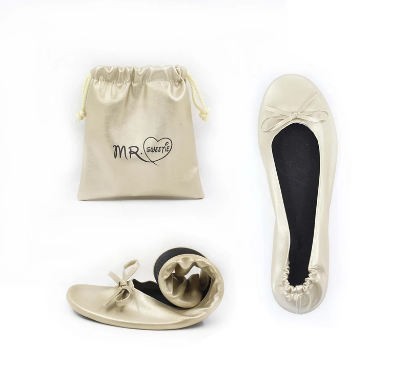 Women's Foldable Portable Travel Pumps Flats Ballet Shoes with Carrier Pouch Bag