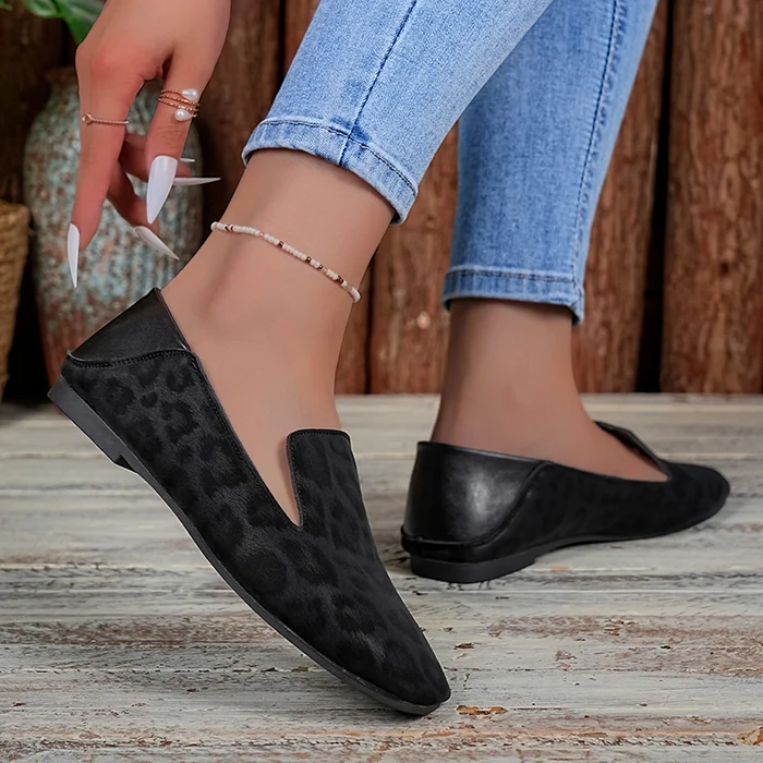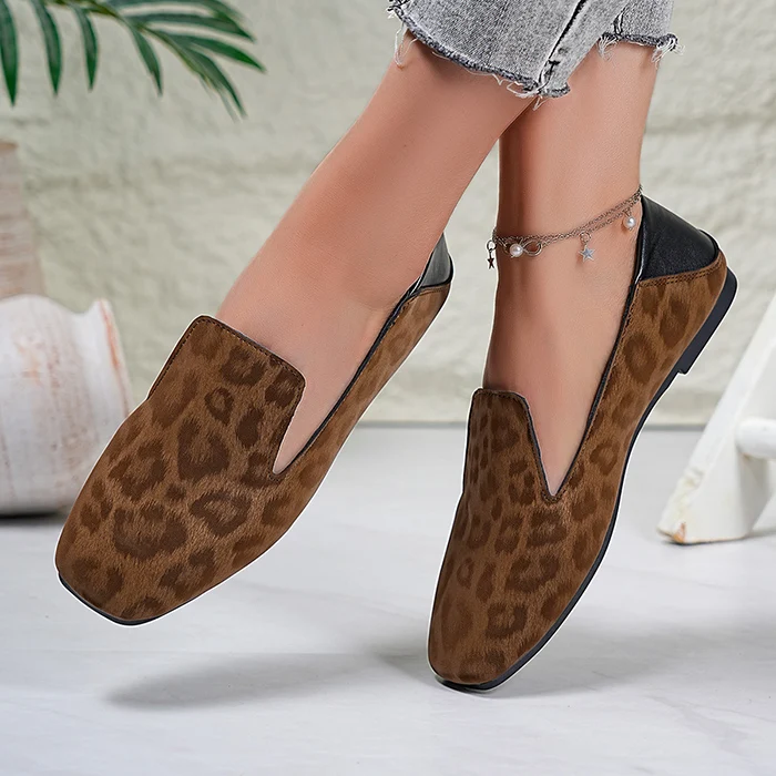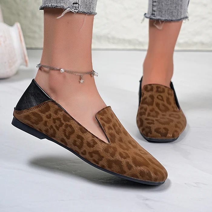 Wholesale Plus Size Women's Casual Flat Shoes Light Ballet Flats Leopard Pattern Slip-On Comfortable Ballerina Shoes