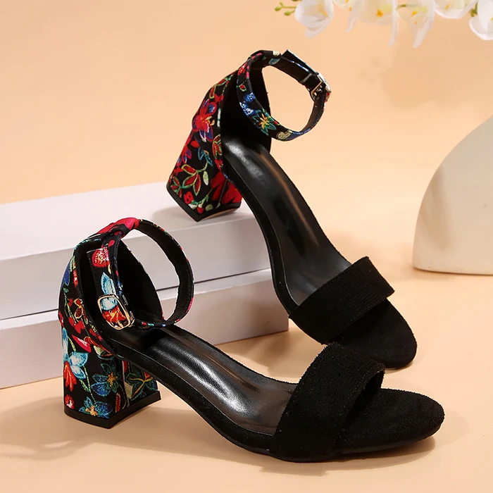 Wholesale Fashion Trend Elegant Suede Big Size Women's Block Heel Floral Fabric Slingback Sandals for Outdoor Dating Parties