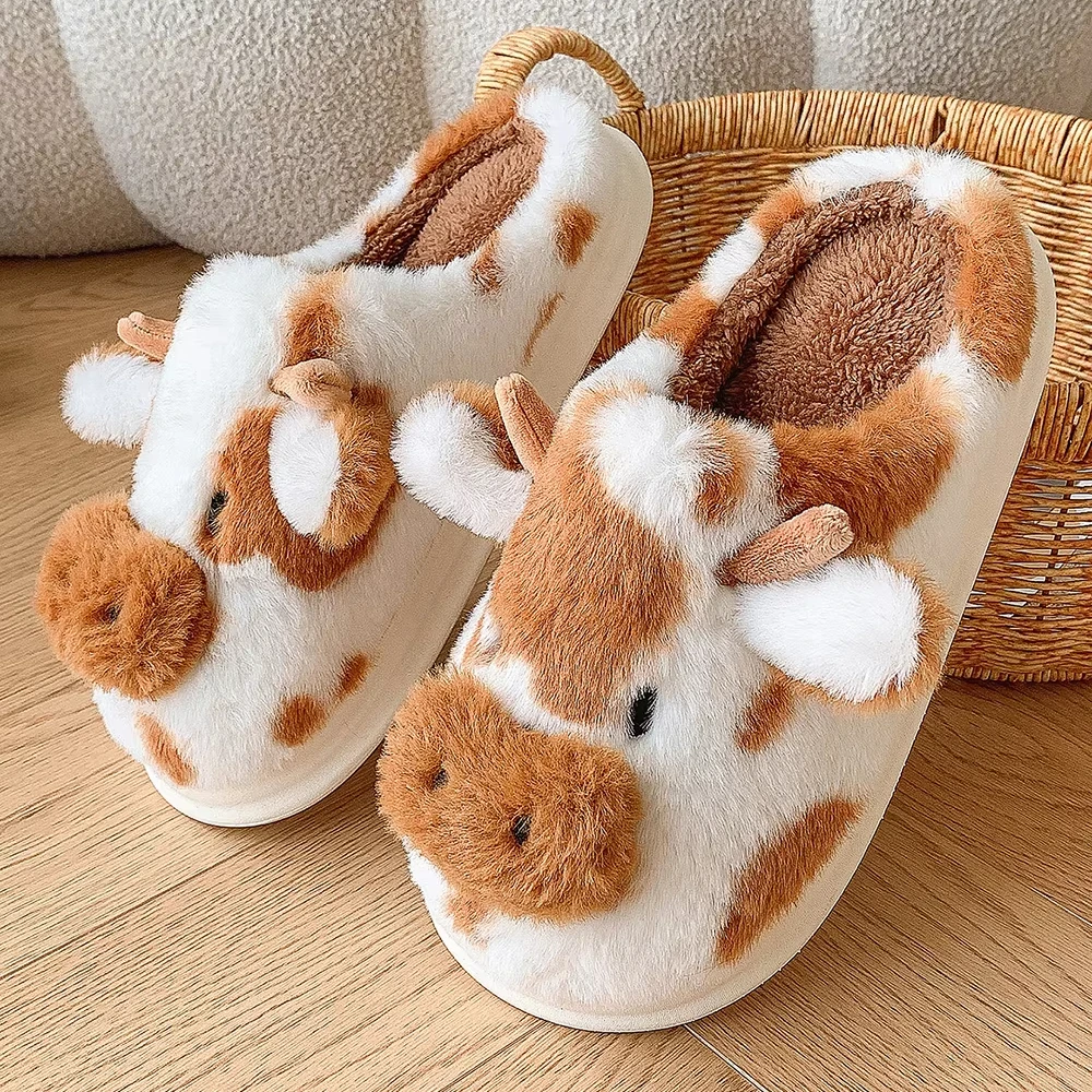 Fashion Women's Colorful Painting Plush Slippers Women's Indoor Winter Non-slip Indoor Home Shoes for Women