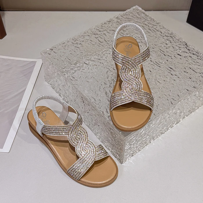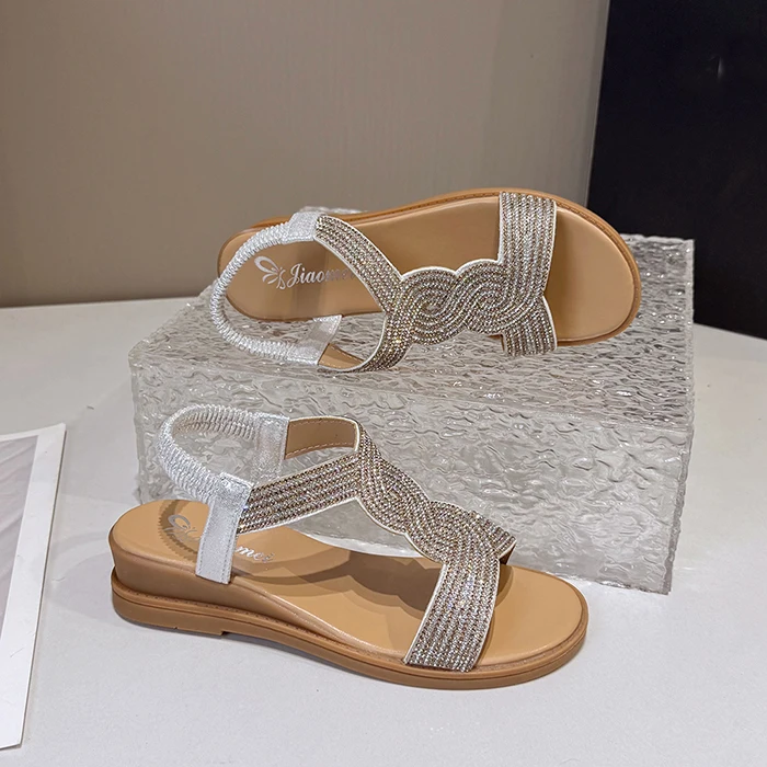 New Wholesale Trendy Large Size Casual Flat Lady Roman Beach Rhinestone Sandals Women's Shoes Wedges Sandals for Ladies