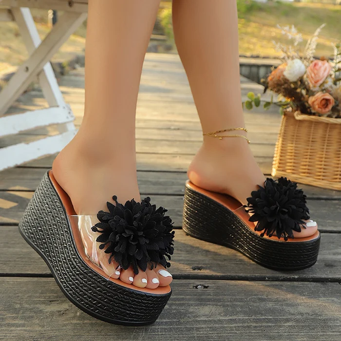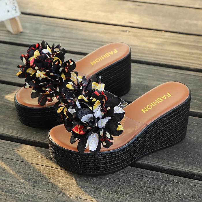 Newest Fancy Flower Ladies Big Sizes Heeled Sandals Female Outdoor Women Flower Wedge Heel Sandals with Thick Bottom Platform