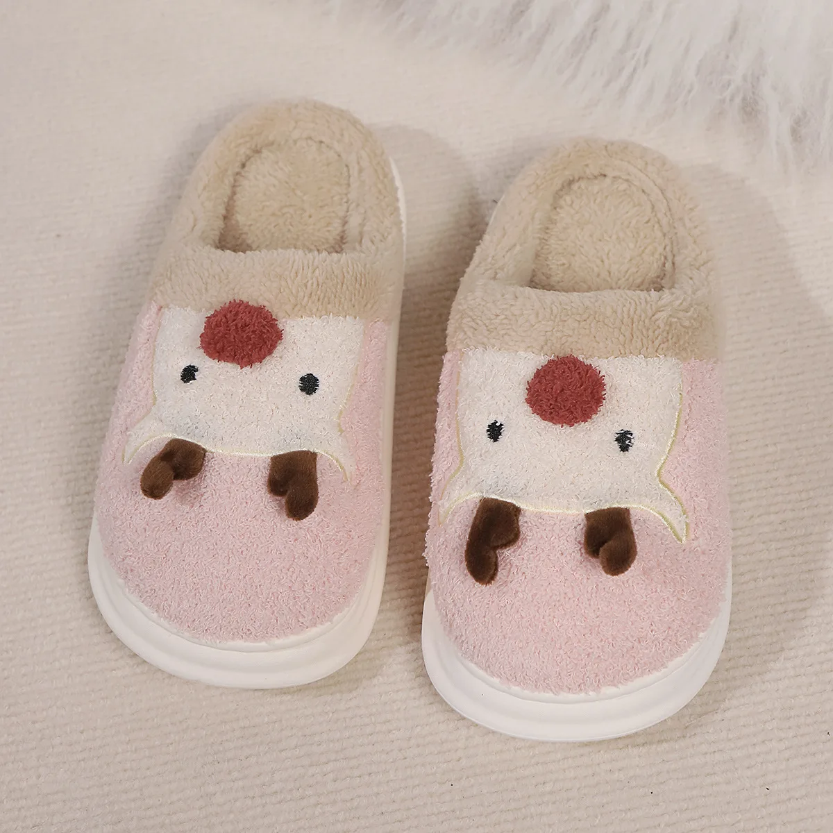 Wholesale Christmas Bestselling Twisted Antler Plush Fleece Thickened Cotton Closed Toe Winter Cartoon for Slides Slippers