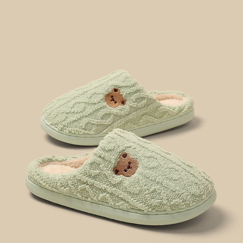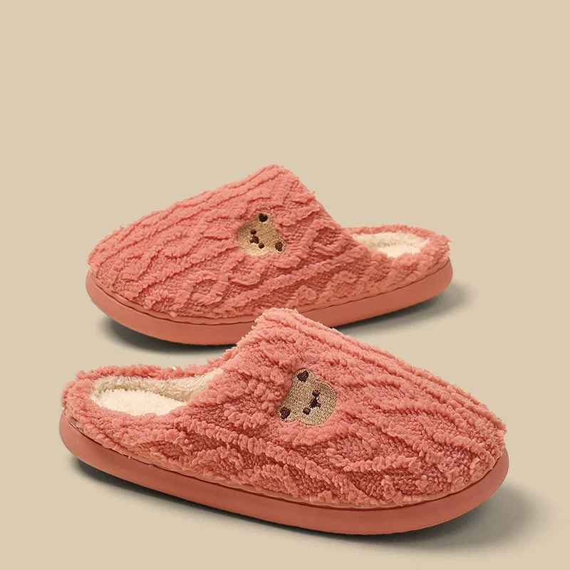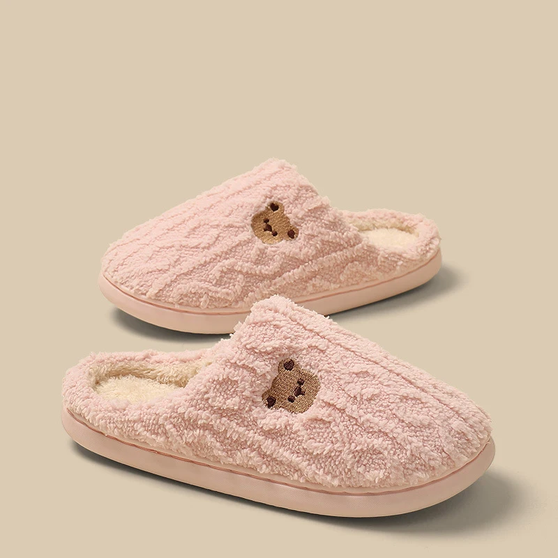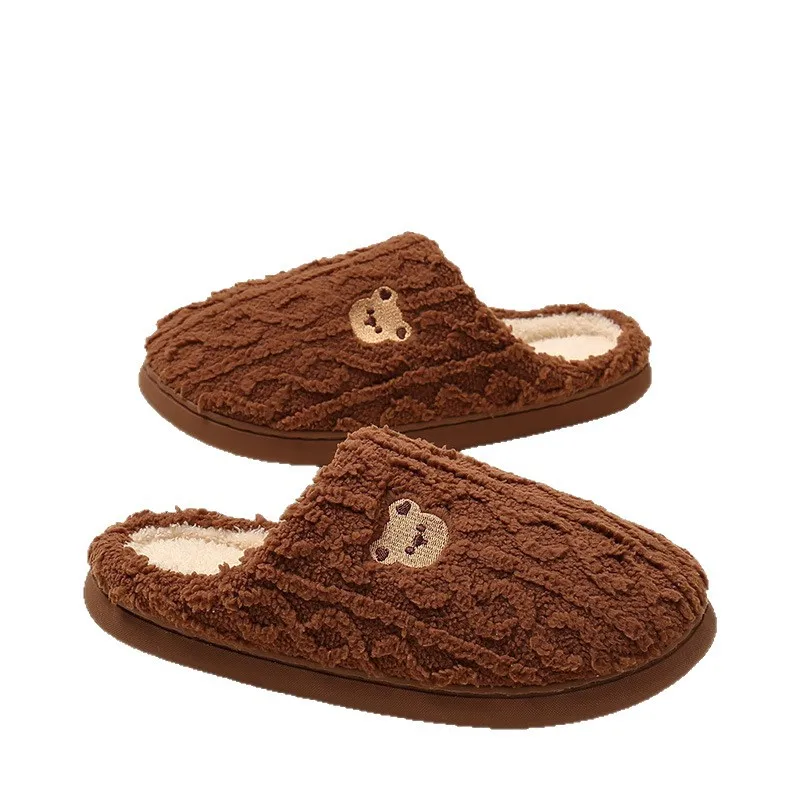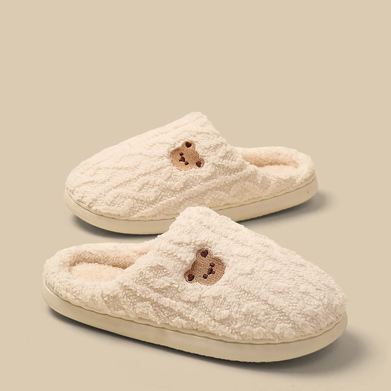 Fashion Couple's Women's Closed Toe Plush Fur Warm Winter Soft TPR Anti-Slippery Comfort Indoor for Embroid Bear