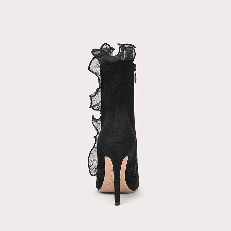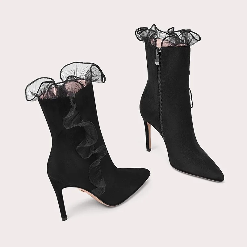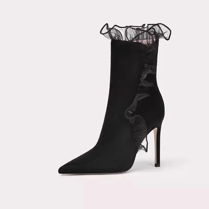 Women's Fashionable Summer Lace Plush Breathable Design Stiletto Heel Pointed Toe Trendy Styles Sold Directly Source Factory