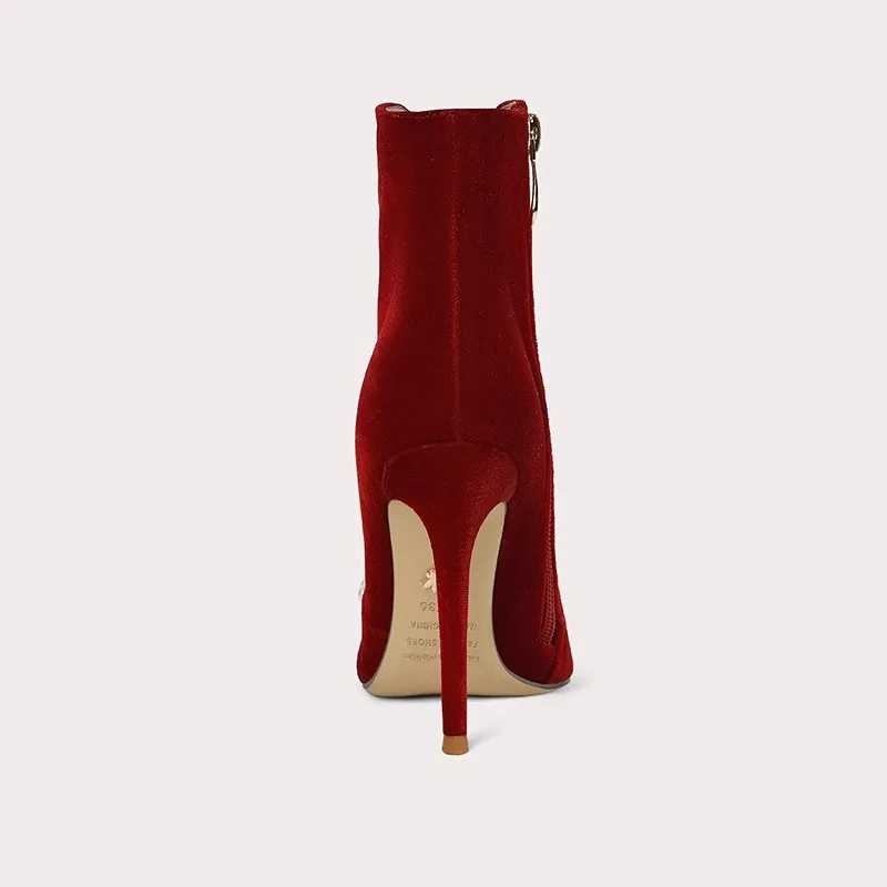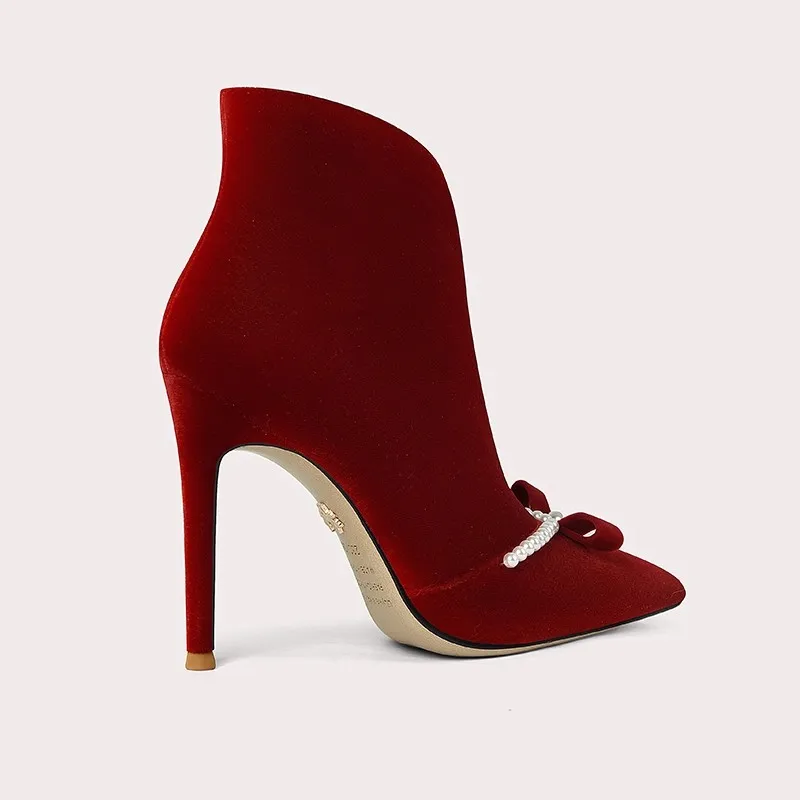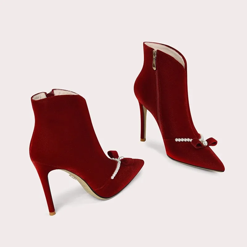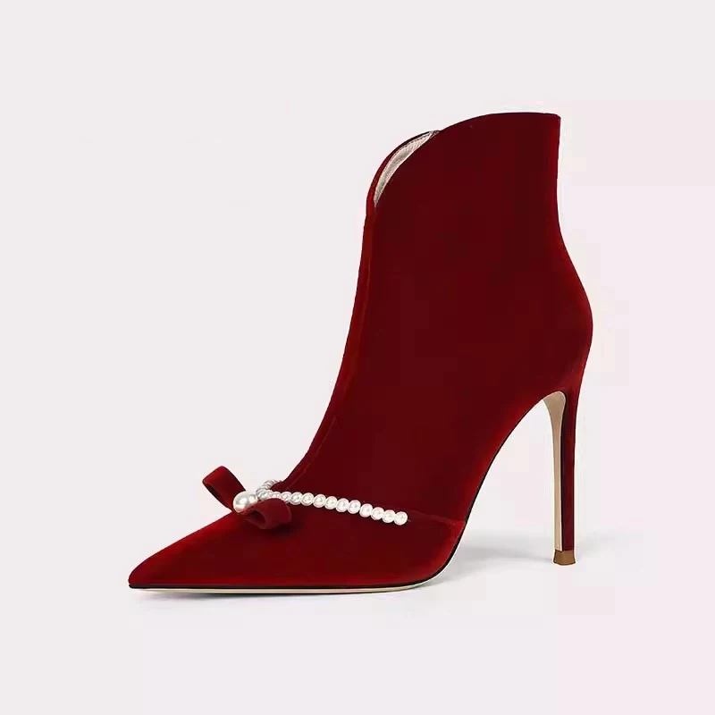 New Women Slim High Heel Pearl Buckle Chain Luxury Shoes Fashion Comfortable Pointed Toe Midi Boots Stiletto Party Short Boots
