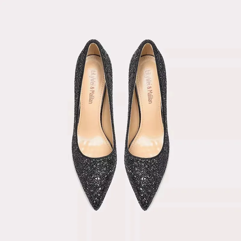 Wholesale Black High Heels Pointed Toe Women Stiletto Sexy Pumps Shoes Lady Fashion for Party Wedding