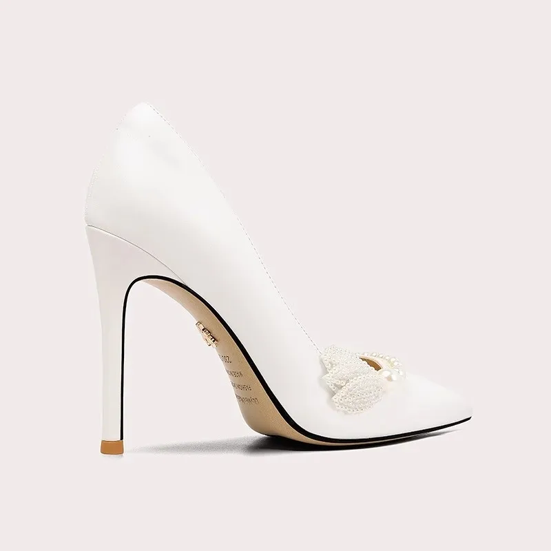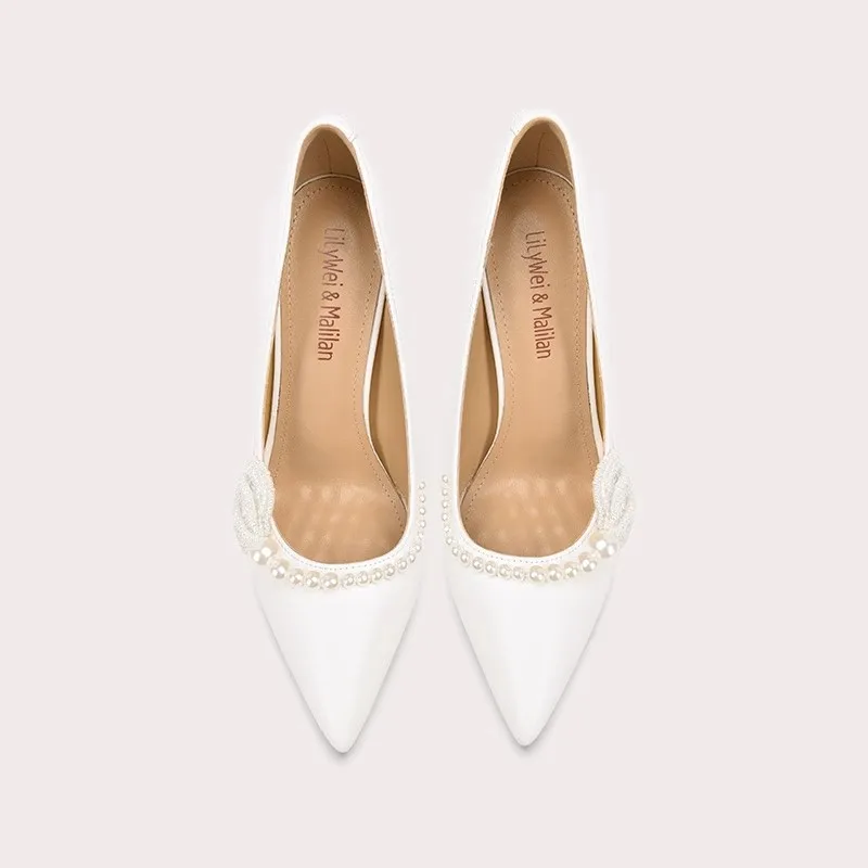 Pearl Decoration Fashion Luxury Pointed Toe White Thin Heels Women's Sandals Wedding Shoes for Bride Women Shoes