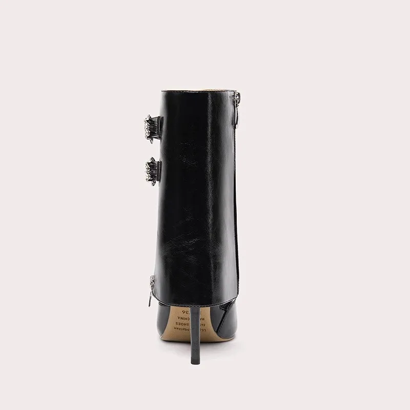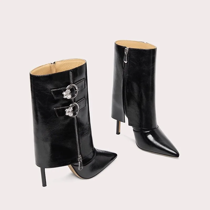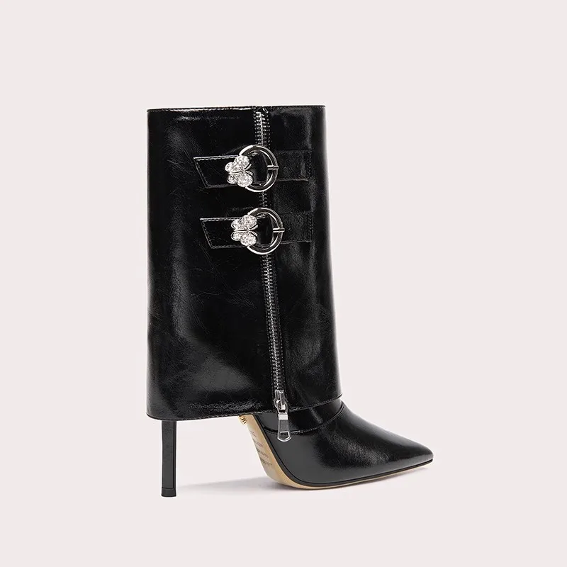 New Design Ladies Boots Midi High Synthetic Leather Ladies Pointed Toe Pencil Heel Punk Boots High Heel Boots for Women Zip