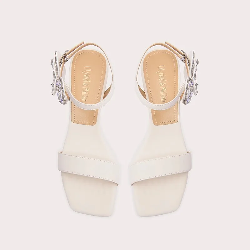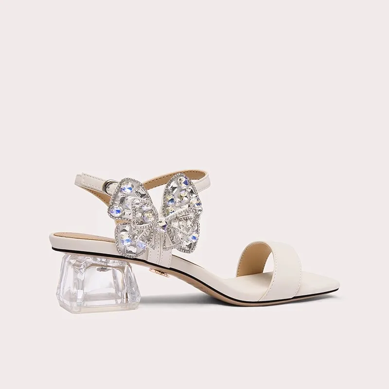 Newest Women Silver Rhinestone Chunky Heels Crystal Sandals Summer One Strap Design