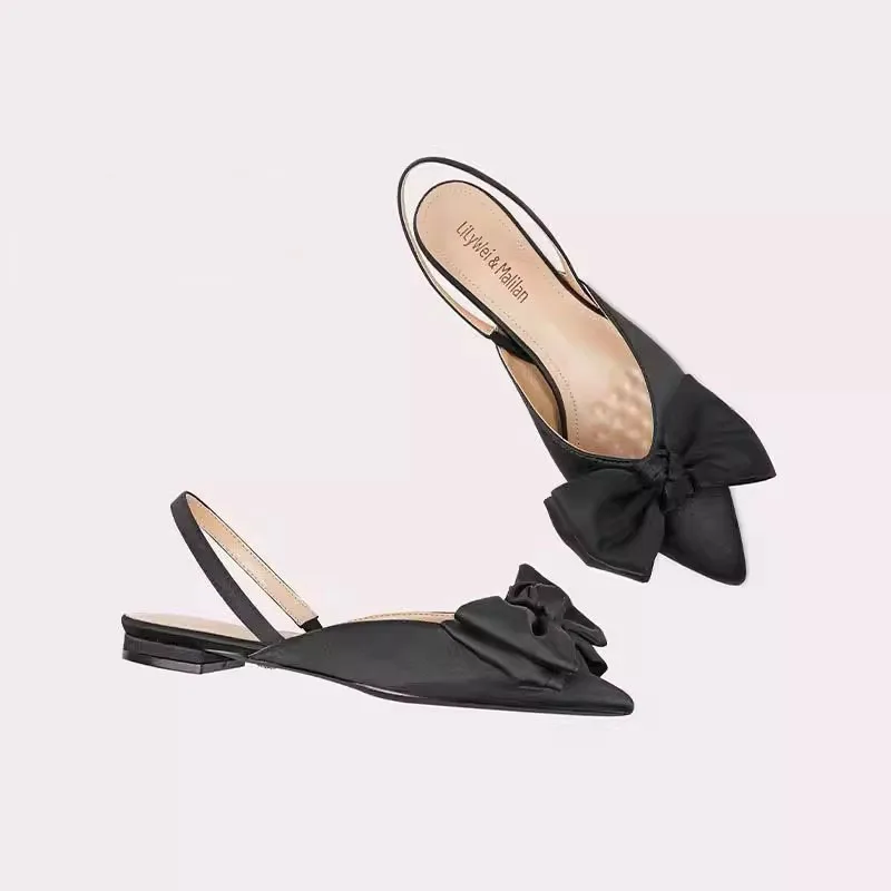 New Summer Simple Pointed Head Flat Women's Bow Decor Fashion Elegant Single Shoes