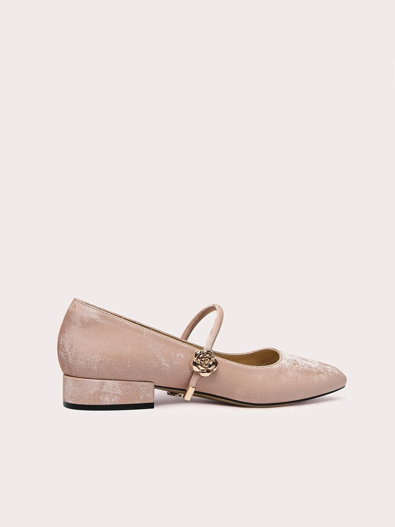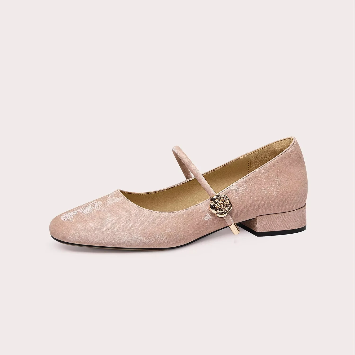 Leather Pink Round Toe Flat Shoes for Women Mary Janes Style with Floral Buckle Elegant Comfortable