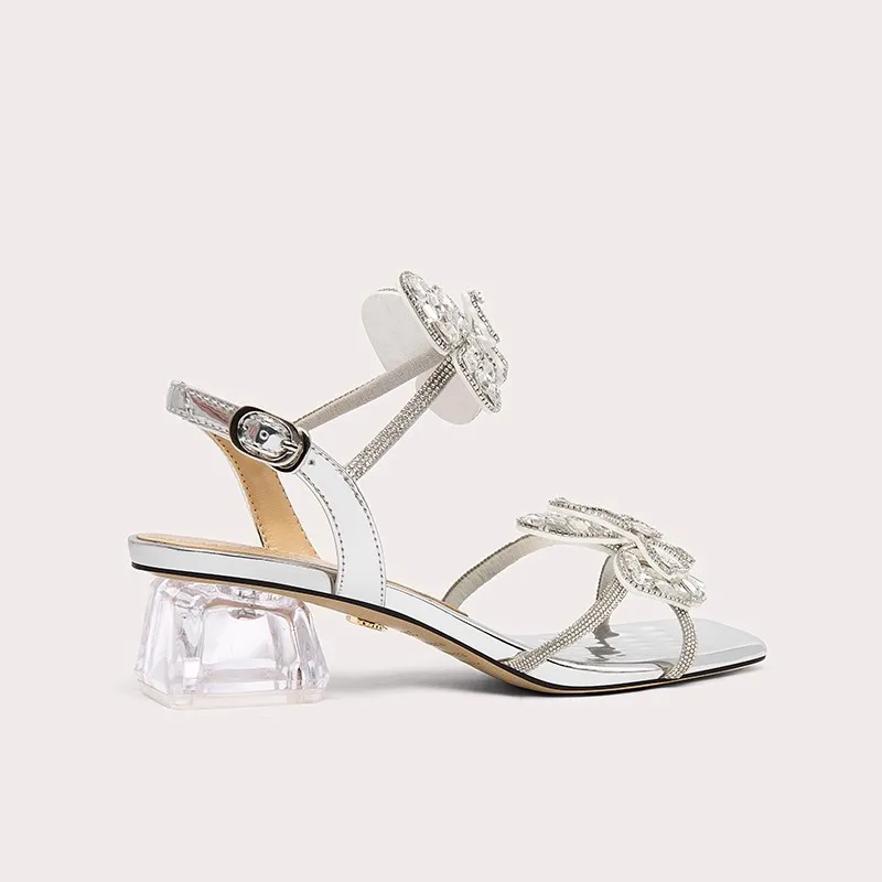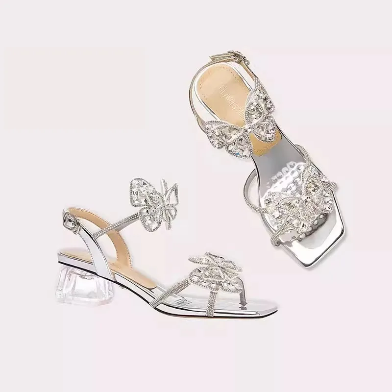 Fashion Butterfly Heels for Ladies Silver Gold Black Rhinestone Outdoor Banquet Party Crystal High Heels Sandals