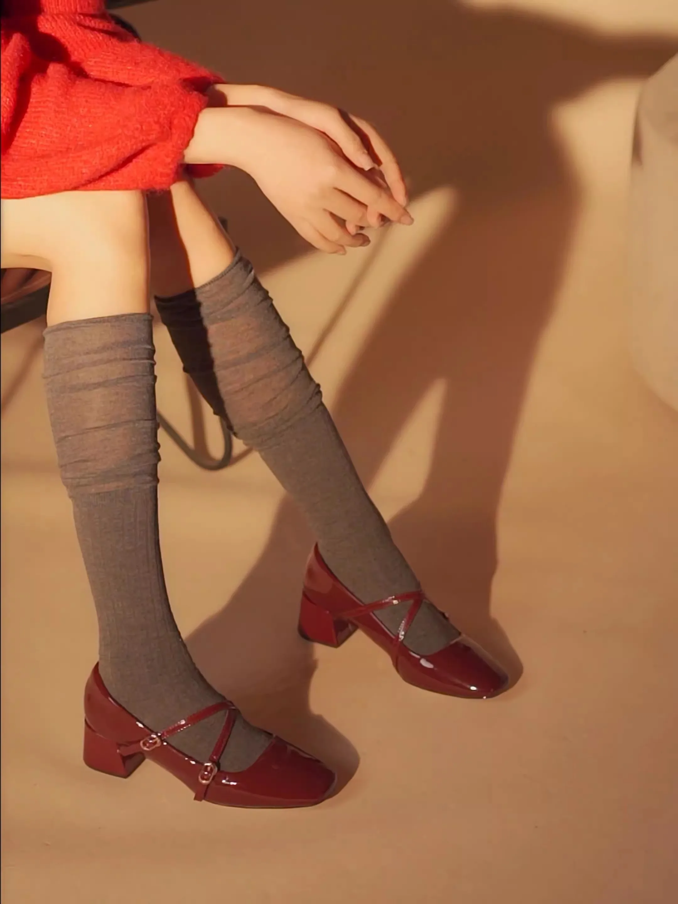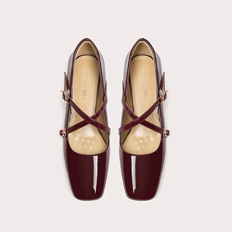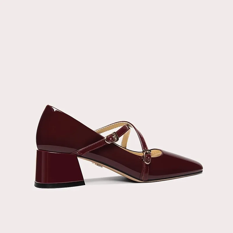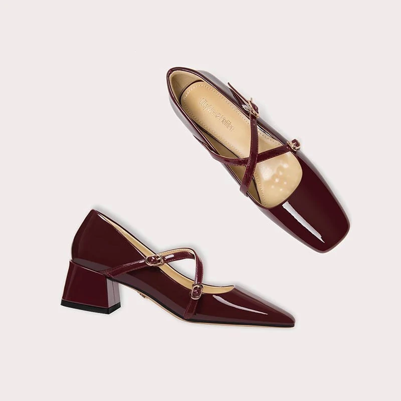 Red Baotou Mary Jane Vintage Bridal Shoes Chunky Wedding Chunky Sandals for Women