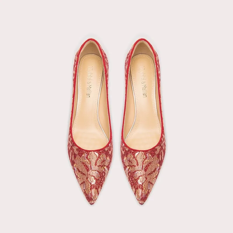 Women's Fashionable Summer Lace Plush Breathable Design Stiletto Heel Pointed Toe Trendy Styles Sold Directly Source Factory