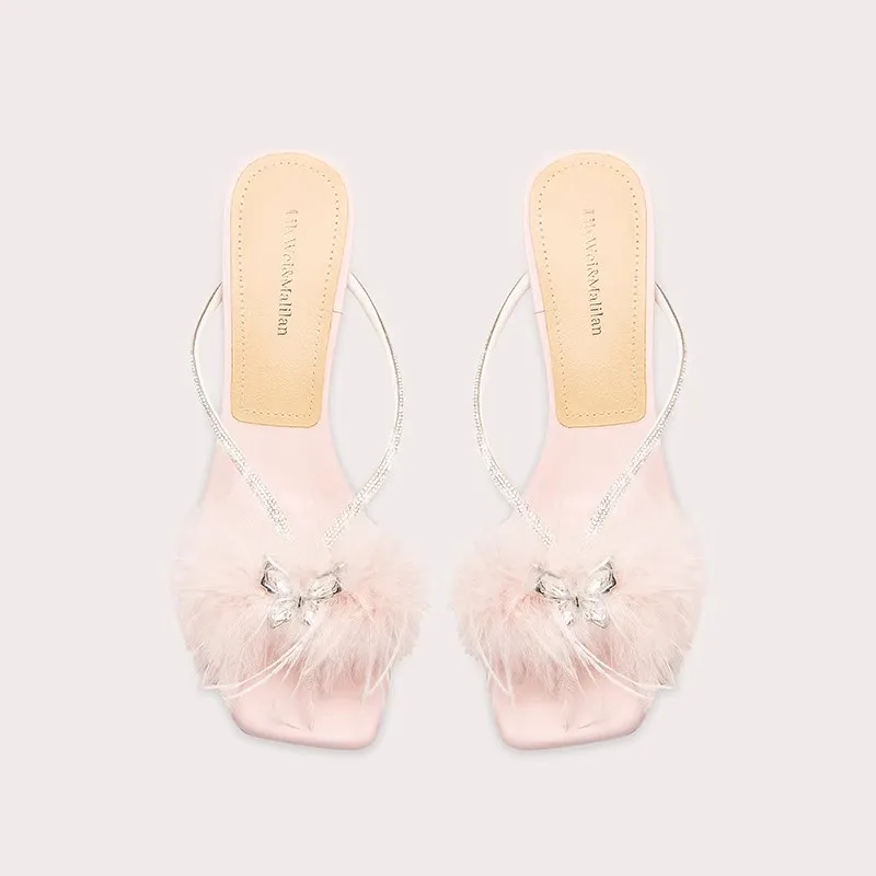 Women's Fashionable Summer High Heels with Plush Upper Breathable Design Pointed Toe Trendy Styles Sold Directly Source Factory