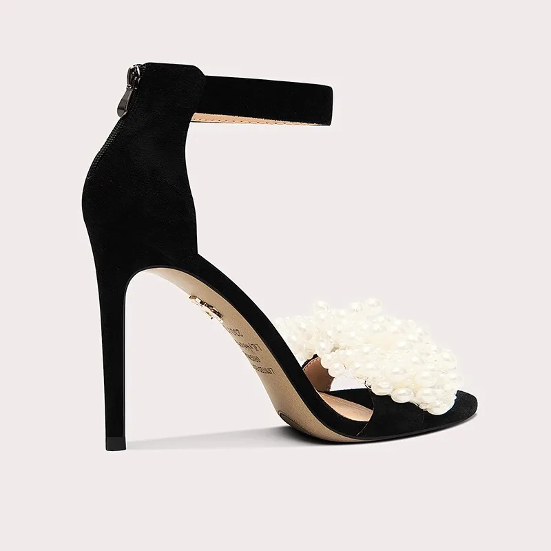 Designer Summer Pearl Ankle Strap Heeled Sandals with Lace-Up Closure Light Weight Pointed Toe