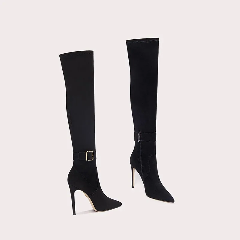 Women's Waterproof Breathable Fashionable Summer Autumn Spring Hard-Wearing PU Upper High Heels with Pointed Toe Trendy Styles