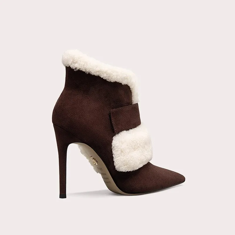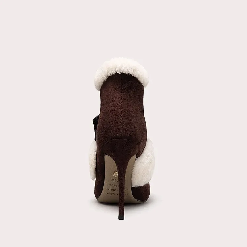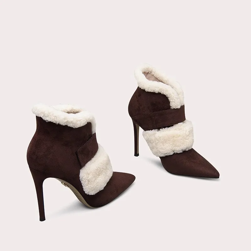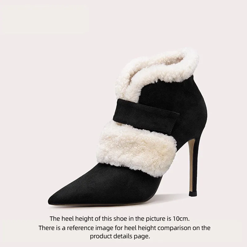Winter Warm Short Boots Elegant Pointed Toe Fashion Designer Zipper Thin High Heel Ankle Boot Lady Shoes