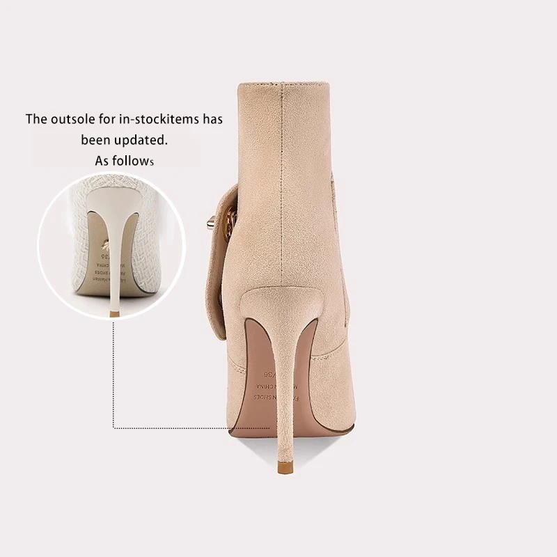Large Size 45 Retro Metal Ornaments Women Pointy Toe Ankle Boots Wide Fit High Heels Shoes Short Booty Dress Pumps