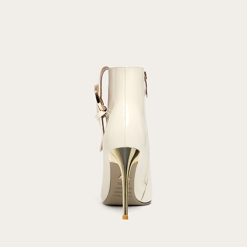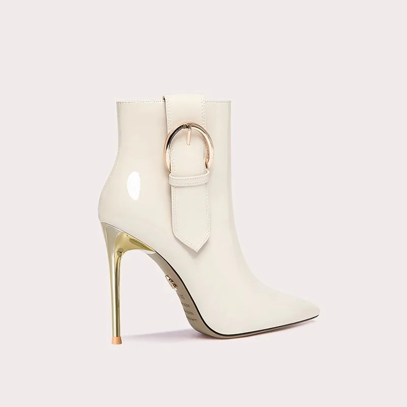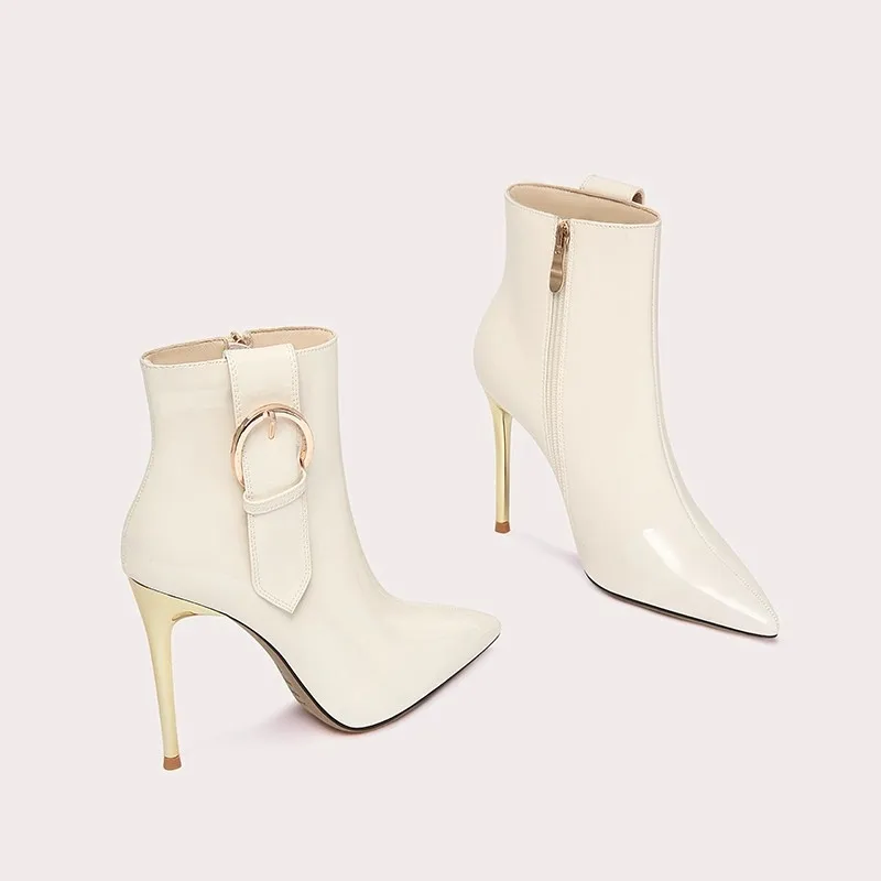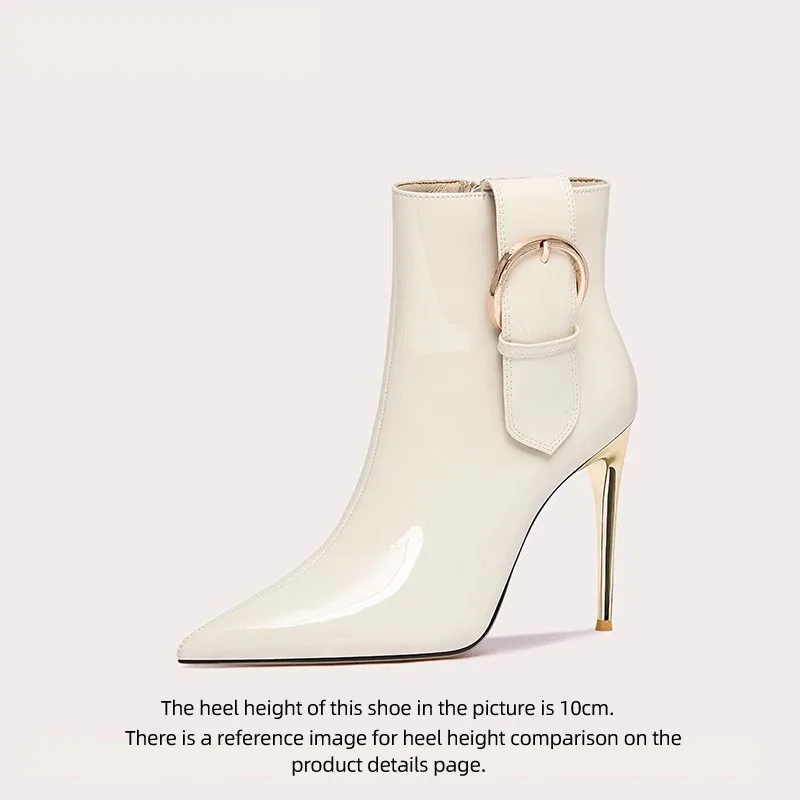 Women's High Heel Ankle Boots with Thin Buckle Pointed Toe and Zipper Short Booties for Spring and Autumn Custom Colors