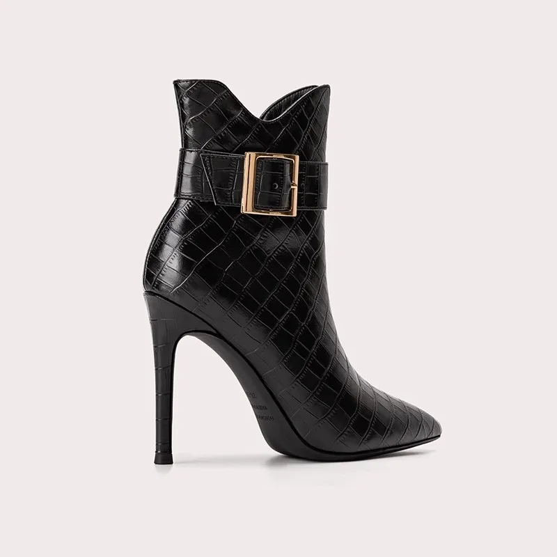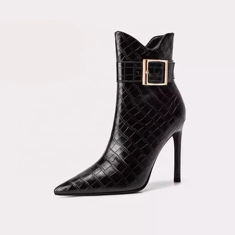 Women's Winter Fashion Stiletto Ankle Boots Zipper High Heels with Pointed Toe Breathable Leather Snow Boots for Ladies