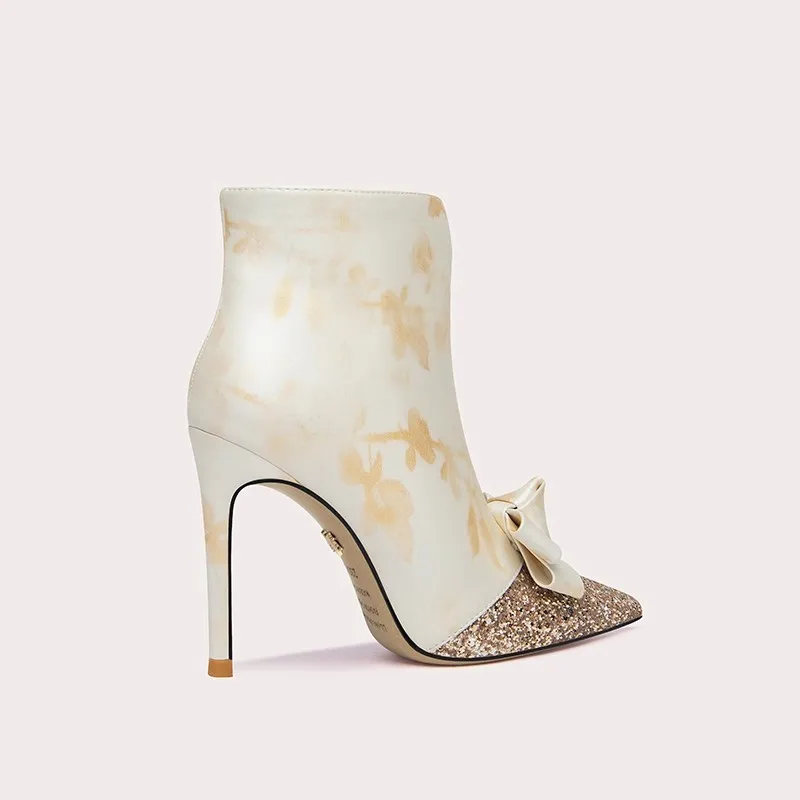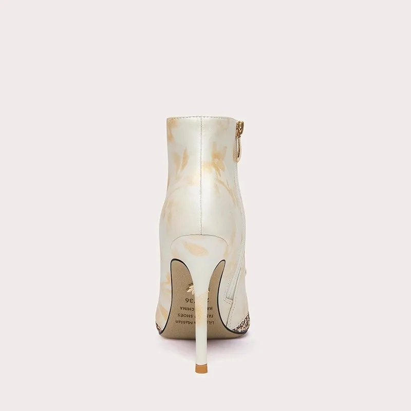 Luxury Diamond Decoration Pointed Stiletto Heels Winter Zipper Boots Elegant Ankle Boots for Women