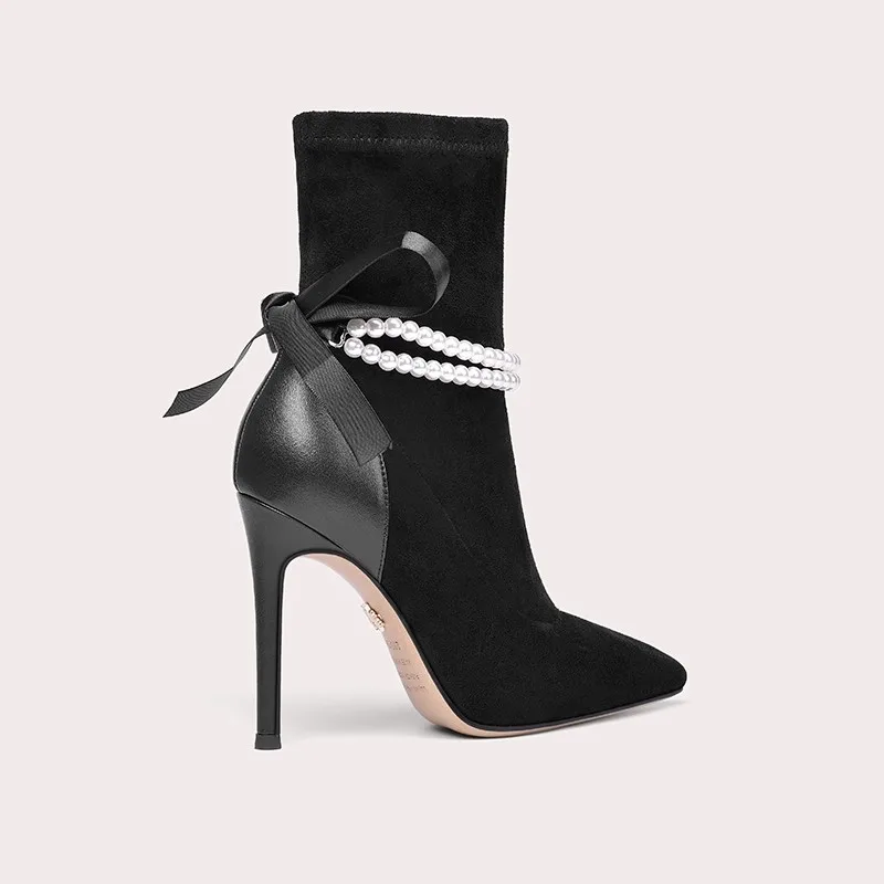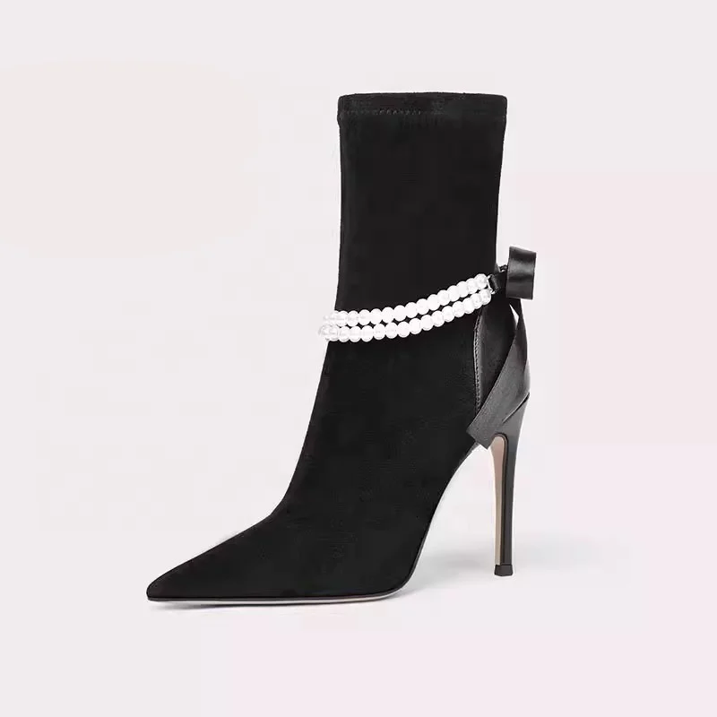 Women's Waterproof Breathable Fashionable Summer Autumn Spring Hard-Wearing PU Upper High Heels with Pointed Toe Trendy Styles