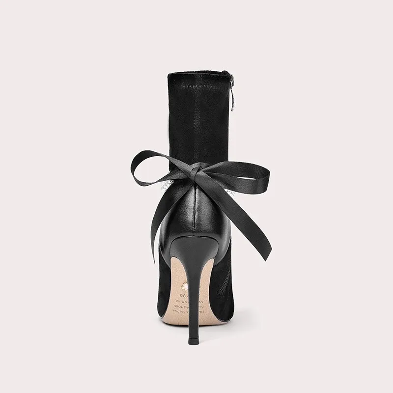Women's Black Ankle Boots Sexy Fetish Zip Closure Strip Pole Dance Exotic Dancer Club Peep Toe High Winter Fashion Thin