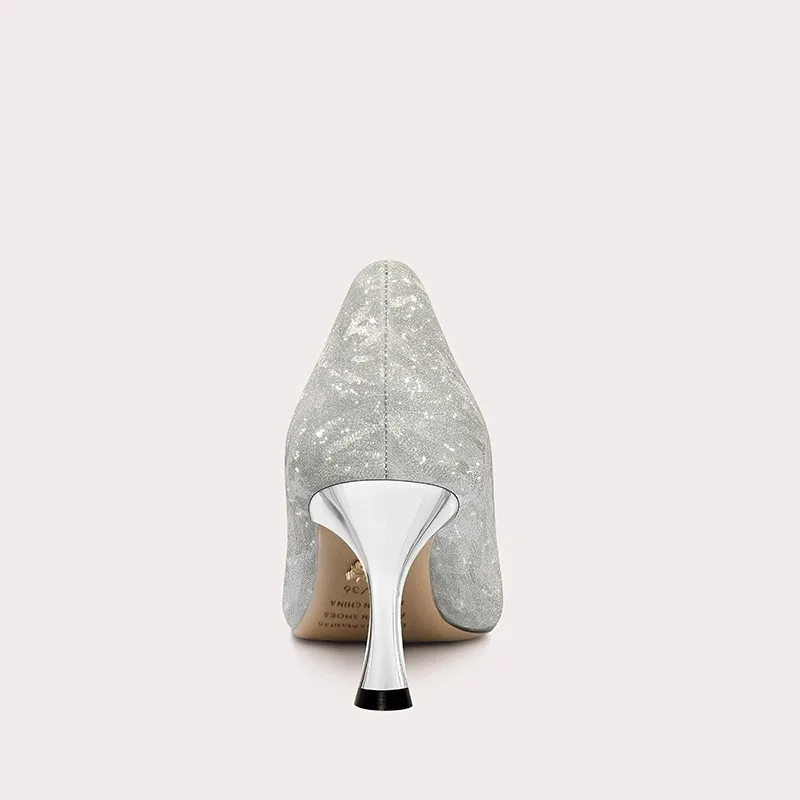 Lady's Premium High Heels Winter Fashion Glitter Shoes with Thin Heels Luxury Bridal Wedding Slip-On Closed Toe Style