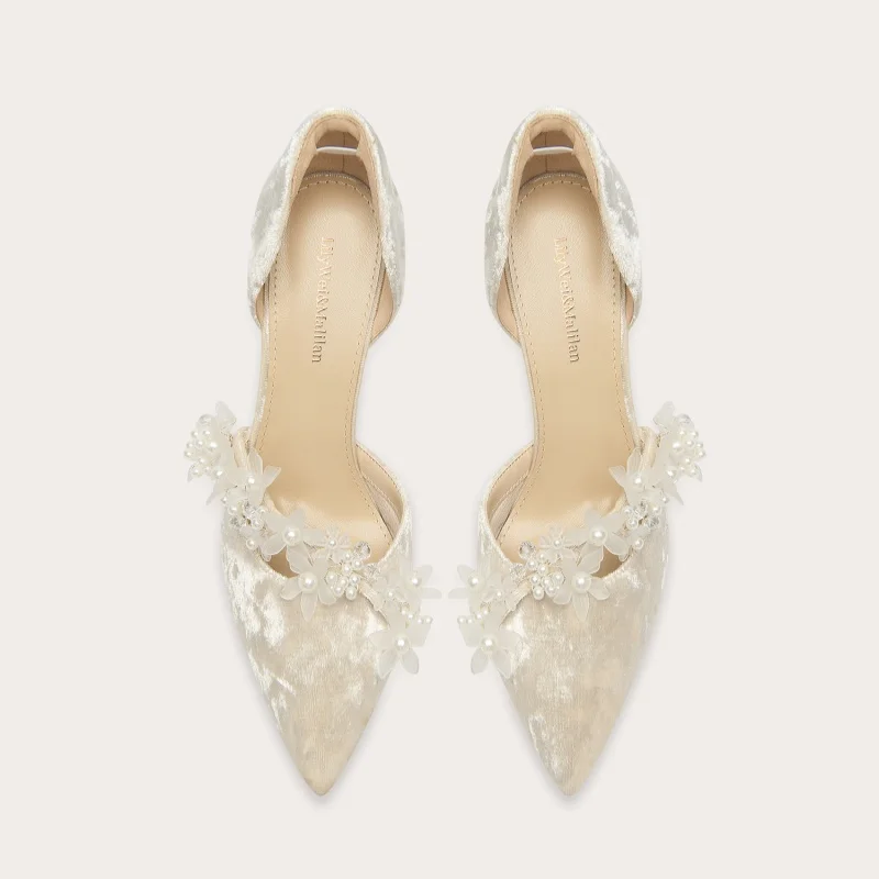 Women's Fashionable White Wedding Shoes 3-10cm Pointed Stiletto Heels Slip-On Closure Rhinestone Decoration Trendy High Heels